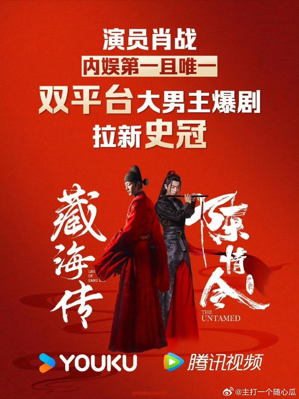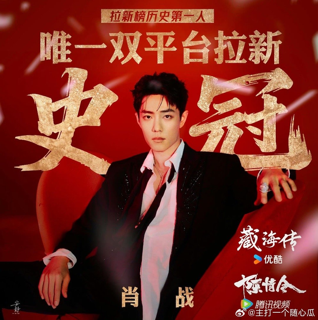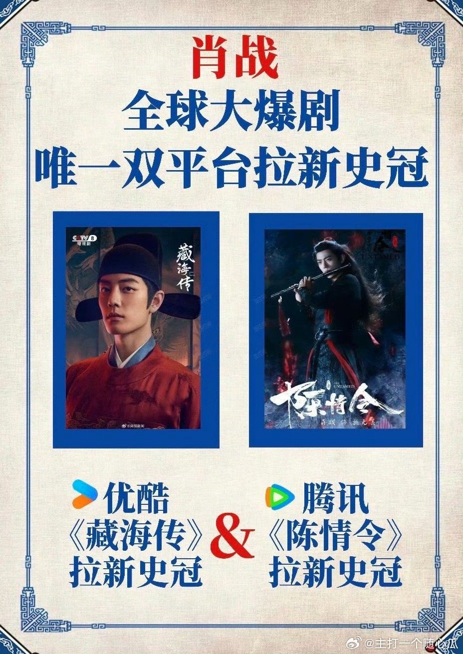 肖战双平台拉新史冠历史第一人,太牛了吧!藏海传&陈情令,两部全球现象级大爆剧! 肖战双平台拉新史冠