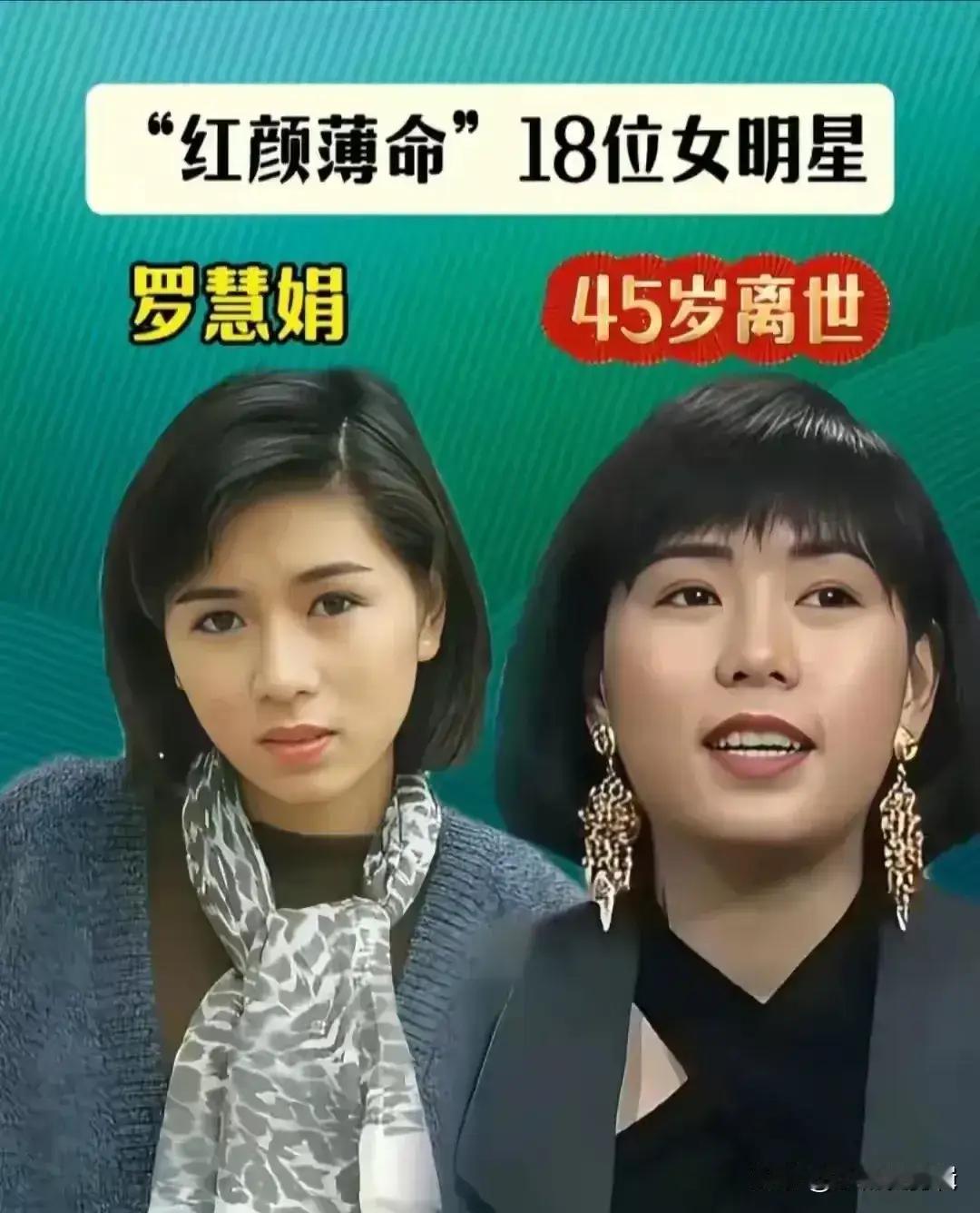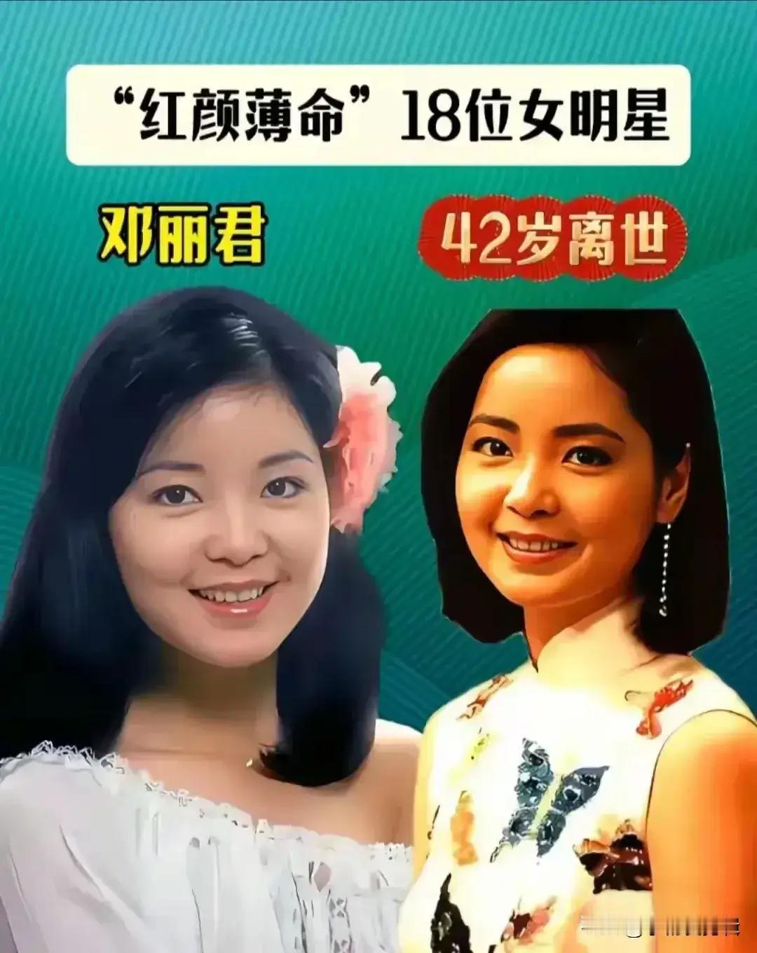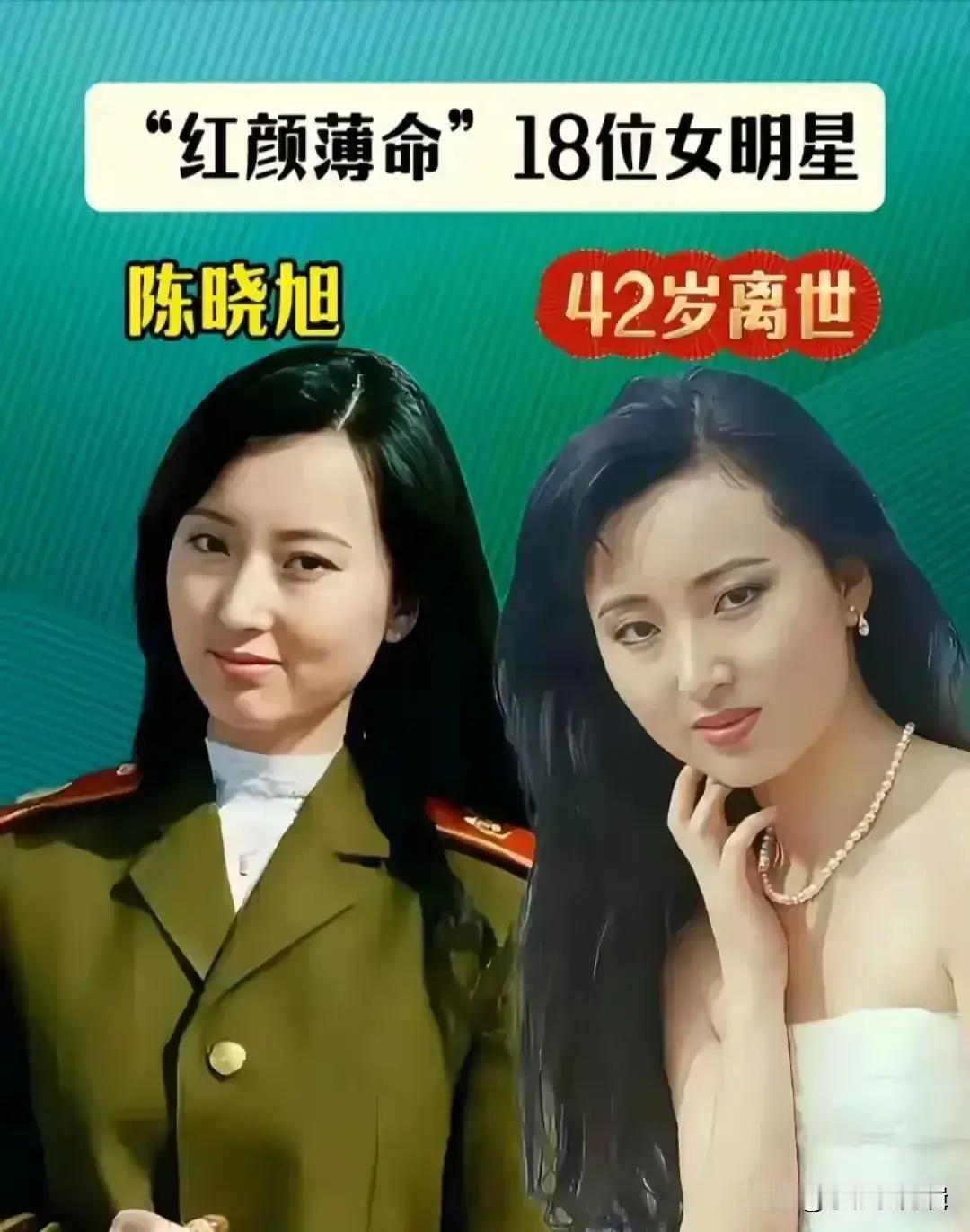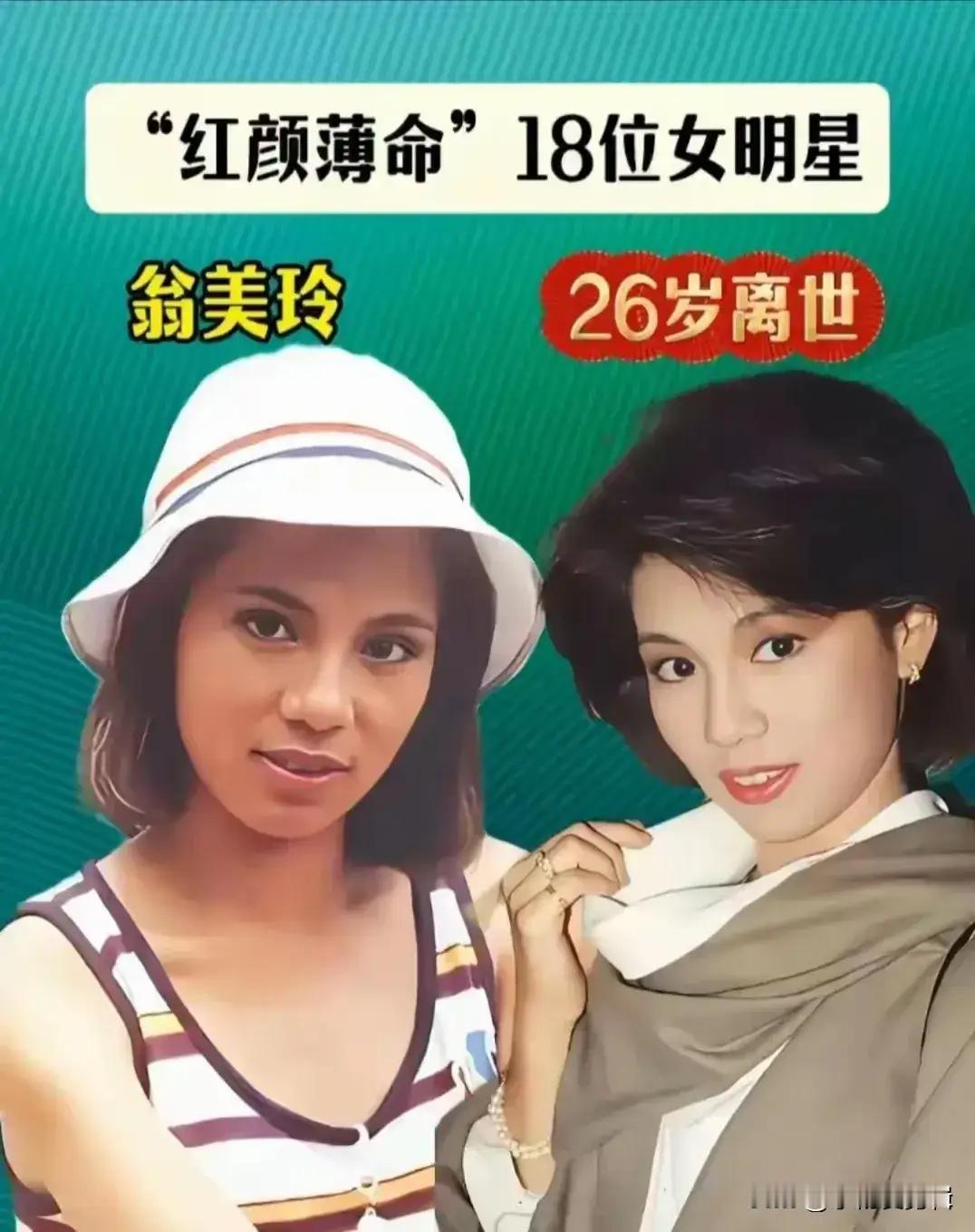 香消玉殒的陈晓旭。 香消玉殒的陈琳。 香消玉殒的李婷。 香消玉殒的梅艳芳。 香消玉殒的李钰。 香消玉殒的陈宝莲。 香消玉殒的李玟。 香消玉殒的罗慧娟。 香消玉殒的翁美玲。 这些娱乐圈女明星们,她们曾经都爆火过,然而在最美的年纪都香消玉殒,离开了人世,让人感到非常的遗憾和痛心,就比如说陈晓旭,大家一提到她就会想到她所饰演的林黛玉,仿佛她就是为这个角色而生,本该有着大好前途的她却不幸患病离世,将生命定格在了最美好最美好的年华。