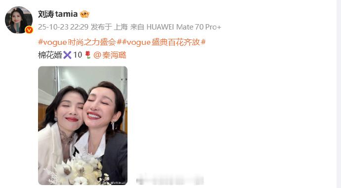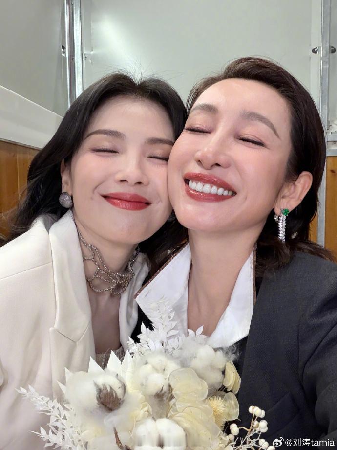刘涛秦海璐贴脸合影刘涛晒和秦海璐合照:“棉花婚✖️10🌹”