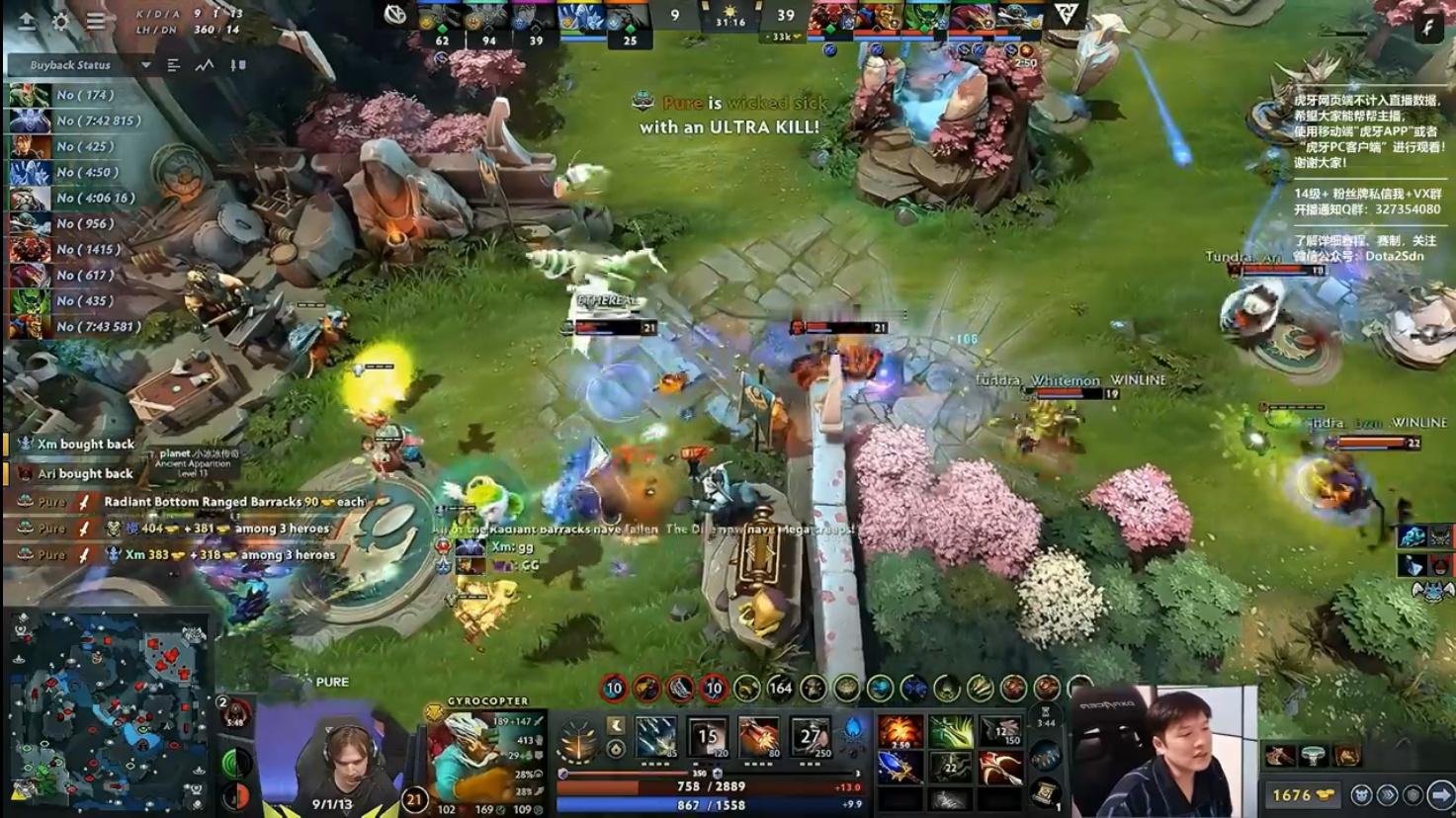 VG vs Tundra第三局,VG双边路对线炸中大炸遭对手碾压被迫与YB会师0-1组[允悲] 不肥的MED实在太无力了,对面随便甩甩技能飘飘aoe,楼贞就没蓝了[泪奔]