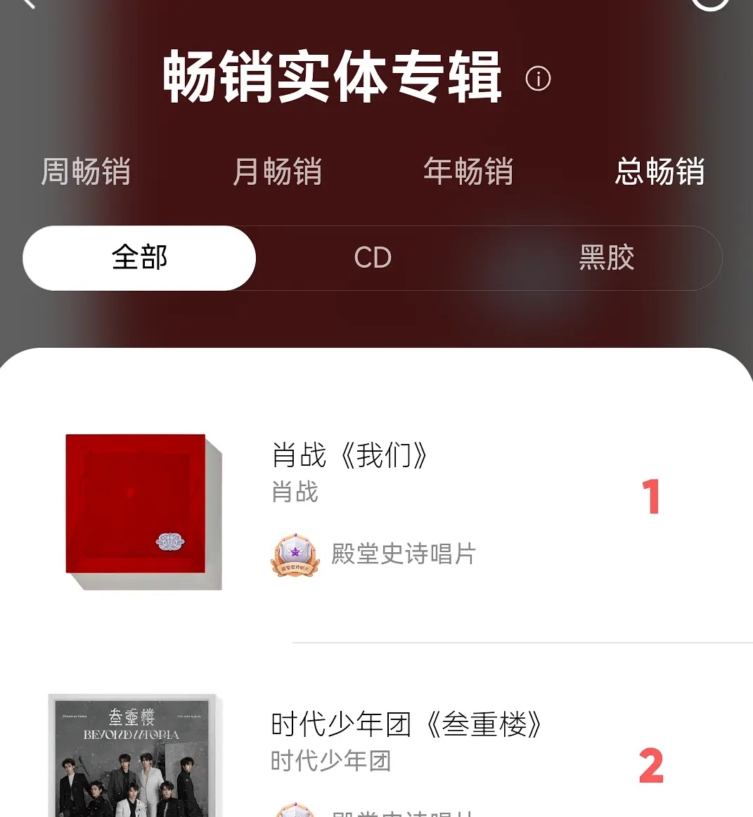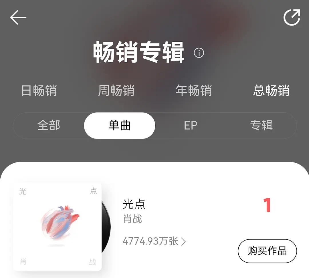 肖战腾讯旗下的QQ音乐单曲史冠(暂),实体专史冠(暂)