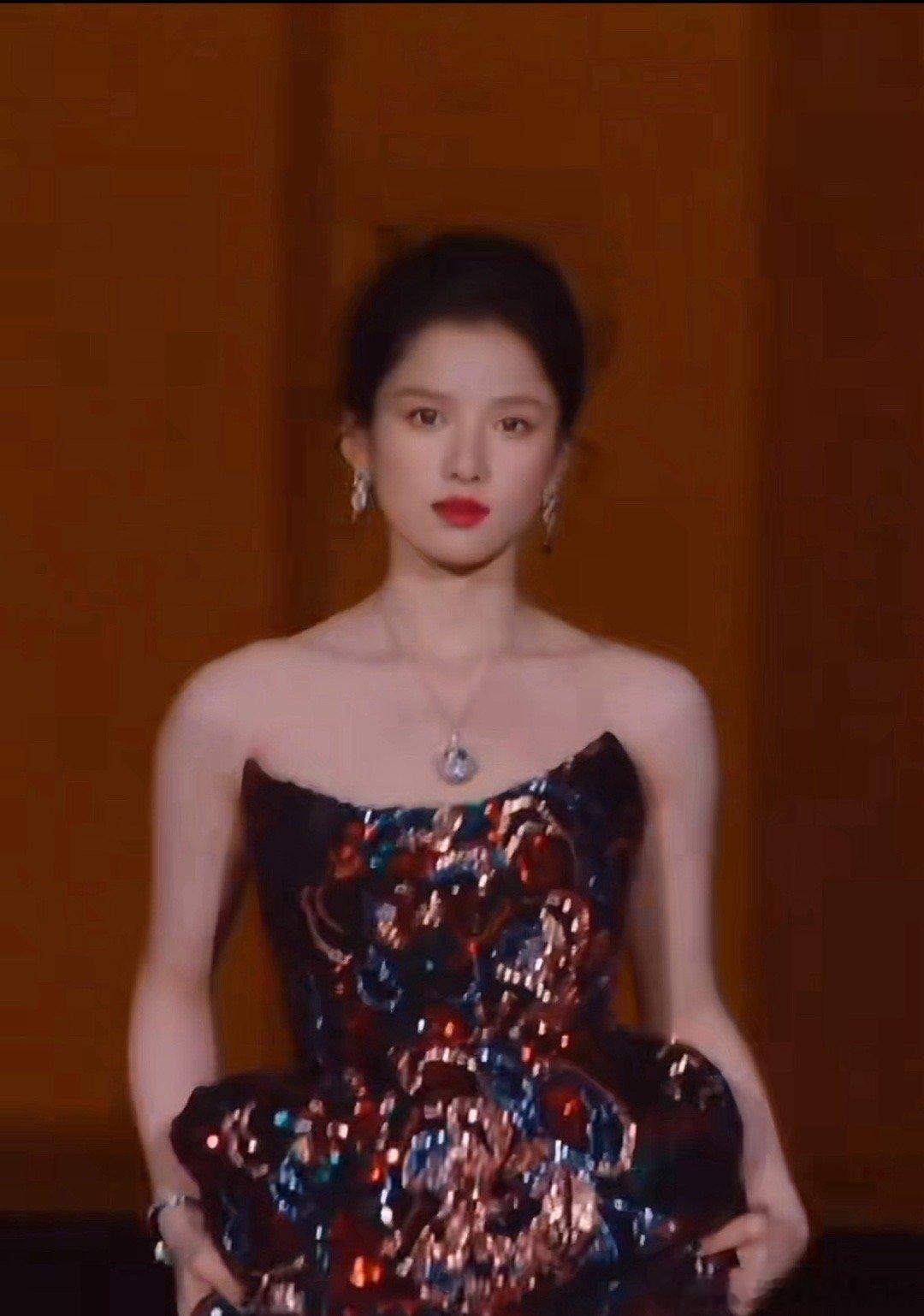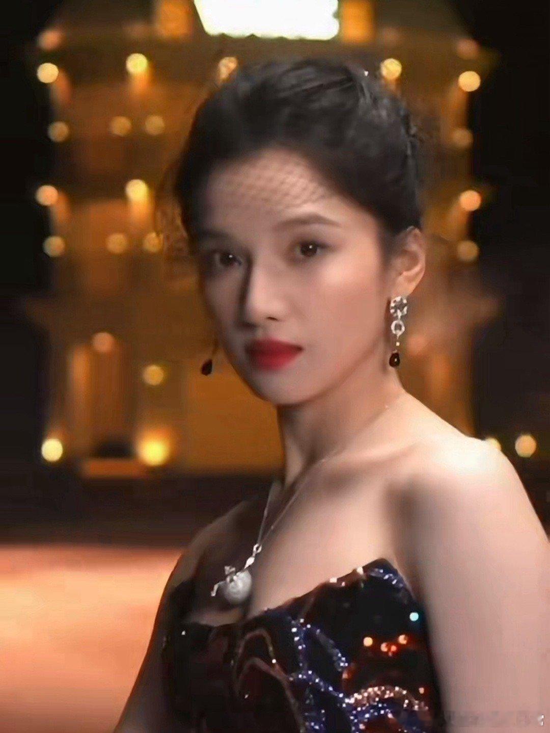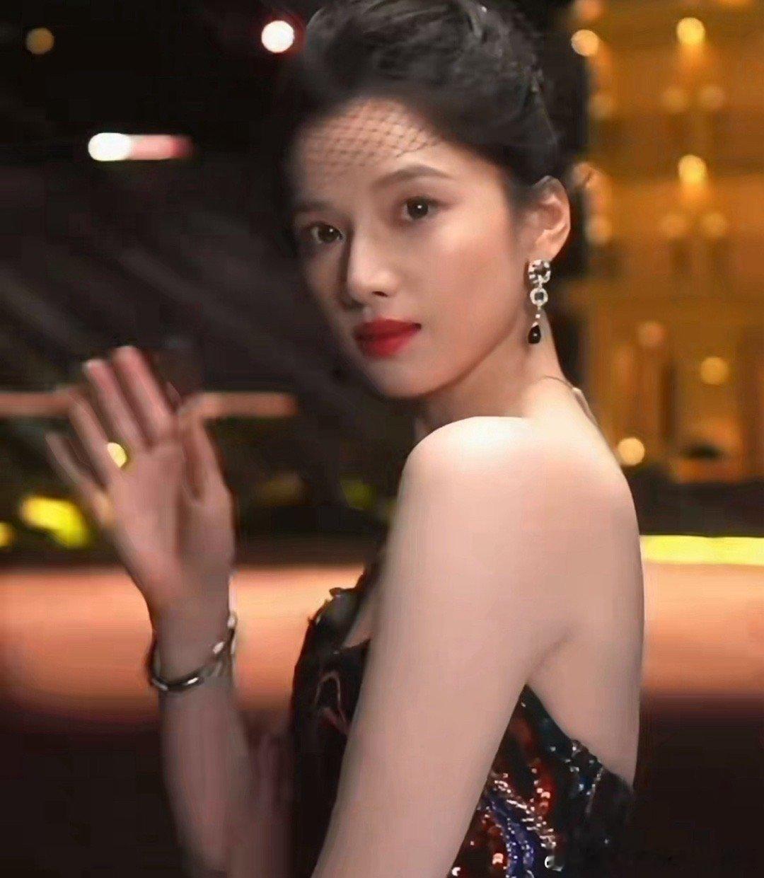 没有刻意凹造型的紧绷感,每一步都像踩在云朵上稳当又轻盈,镜头扫过来时,她微微侧头笑那一下,眼尾的弧度和脖颈的线条能把人魂勾走!这哪是走红毯,分明是从古典画里走出来的贵女,自带柔光滤镜,连路过的风都得绕着她的裙摆走~