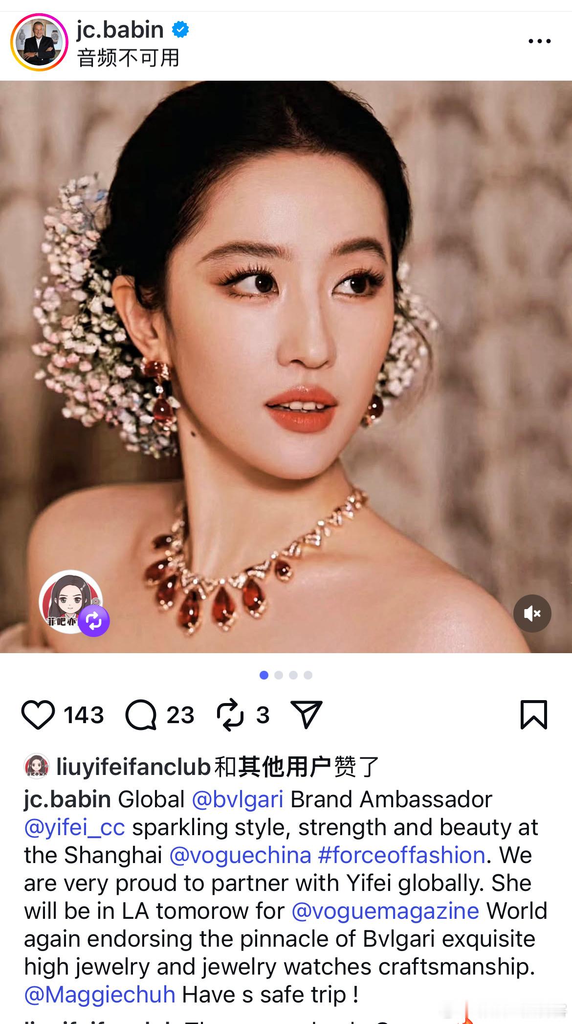 他盛赞刘亦菲在Vogue二十周年的闪闪发光