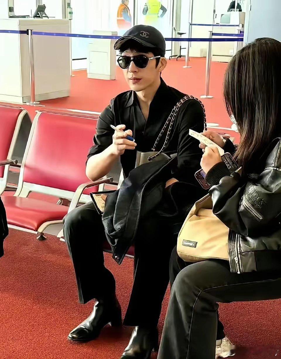 井柏然和刘雯在巴黎机场休息室。他俩同框简直就是行走的画报,行走的t台,太养眼了!