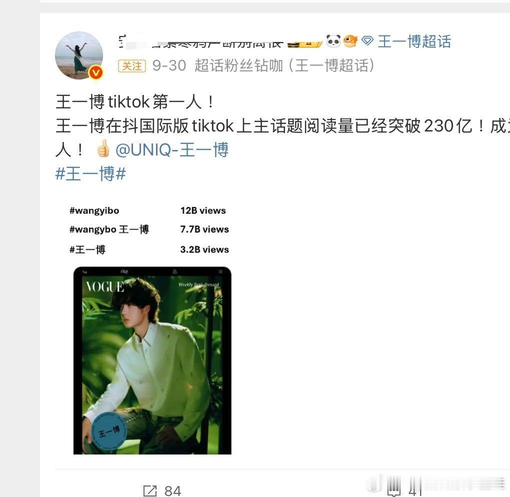 王一博赛车跨界破圈层流量爆光表现,Tik Tok上是断层第一,播放量早就超过230亿+,Facebook 讨论度也是断层top1,巨星的影响力在海外一直都是一骑绝尘! ​​​