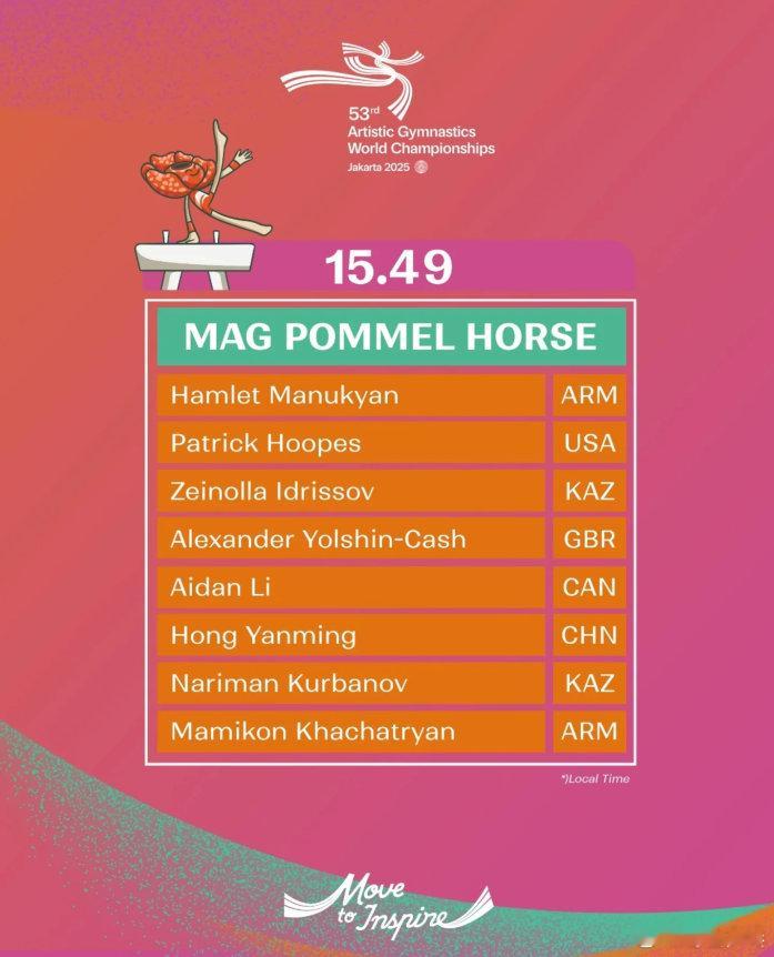 张博恒世锦赛吊环单项冲冠2025年体操世锦赛今日迎来多场单项决赛女子跳马决赛:邓