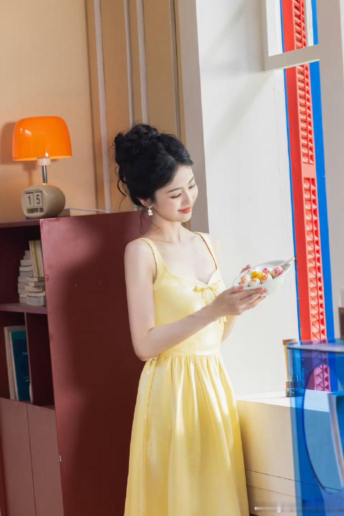 白鹿黄色吊带裙白鹿银色珠光吊带裙 黄色裙明艳耀眼,活力风采尽显;银色裙闪耀迷人,优雅气场全开,白鹿轻松驾驭不同风格!