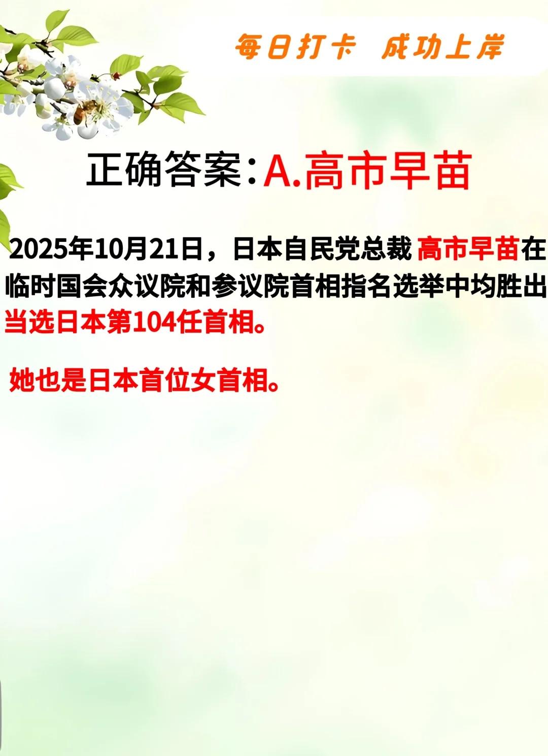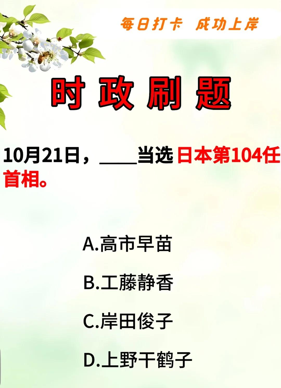 时政刷题|____当选日本第104任首相? 记录吧就现在 时政热点 时事热点 热点新闻事件 每日一题 今日热点 事业单位备考 省考公务员考试 公基常识 国考