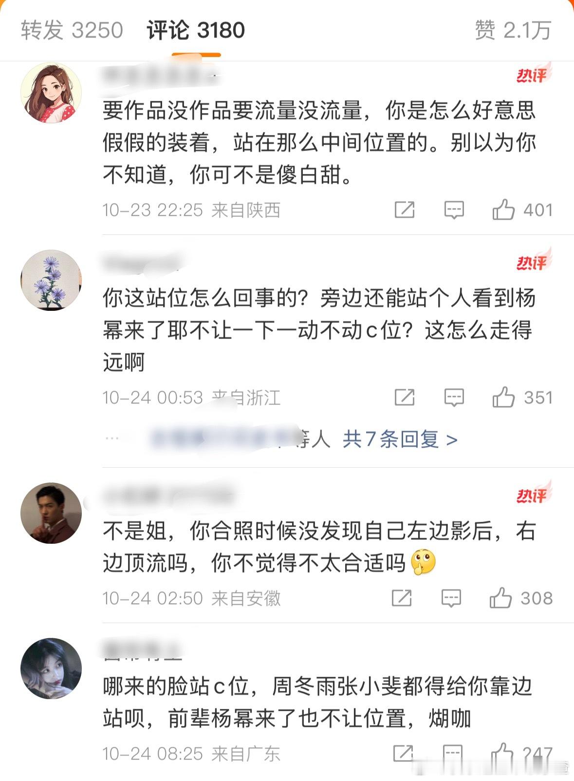 钟楚曦合影站位引热议,被指站住C位一动不动。目前钟楚曦的广场和评论区沦陷了。