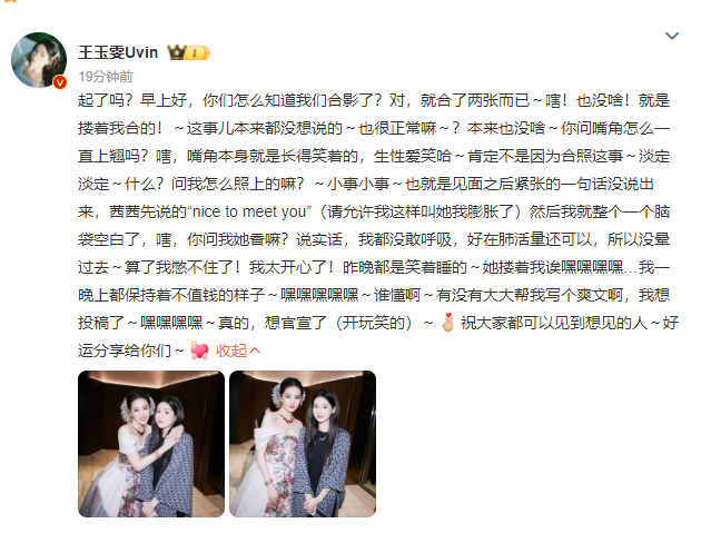 我看见刘亦菲也王玉雯这样,王玉雯追星刘亦菲成功合照,咱就说这个臭屁的语气,王姐还得是你啊,咱就说这下该我们羡慕你了呀~