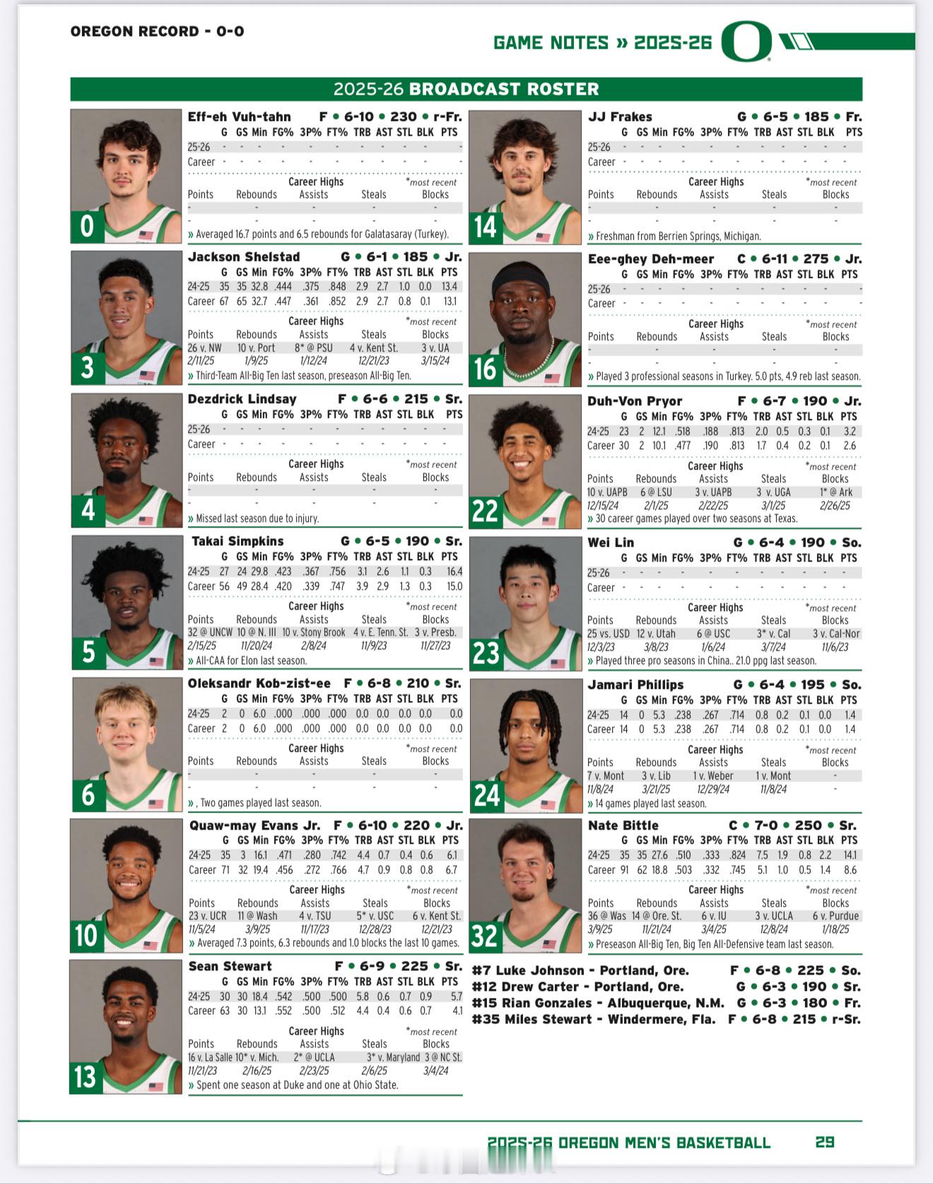 俄勒冈大学的首场比赛,将在当地时间10月24日晚七点(北京时间10月25日上午10点)开始,球队的赛前game note能看到林葳的信息,不过数据那里好像写错了,不是他的比赛[无聊] ncaa