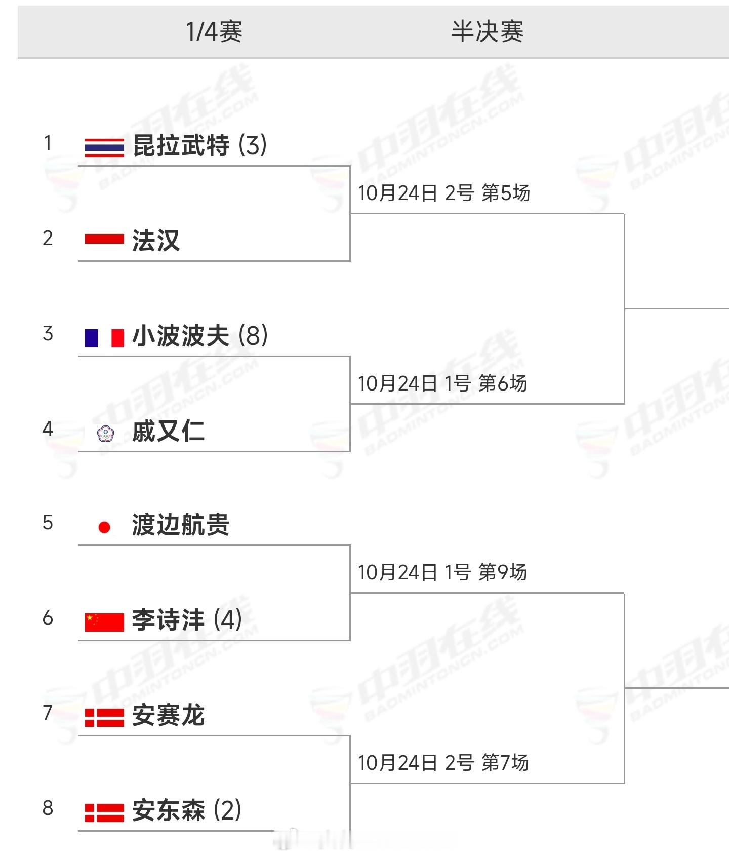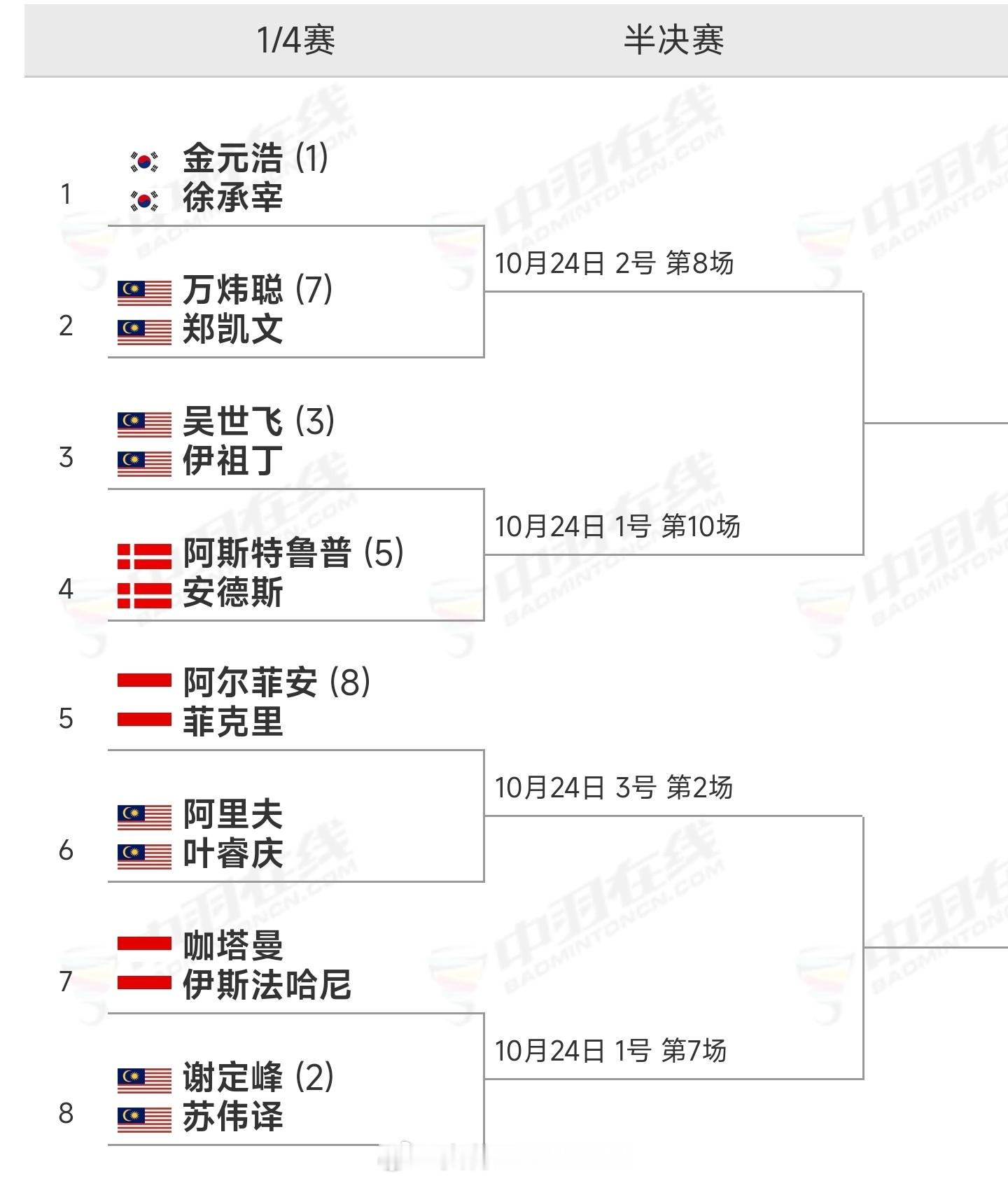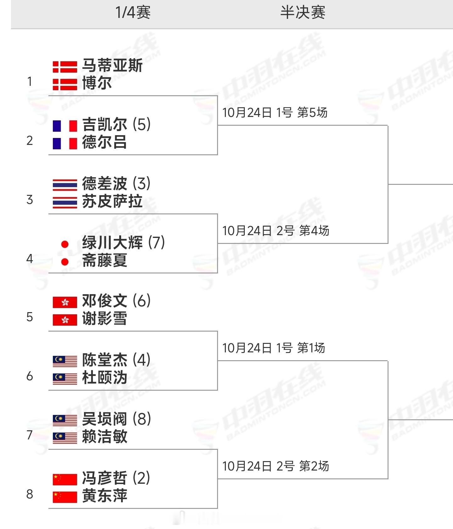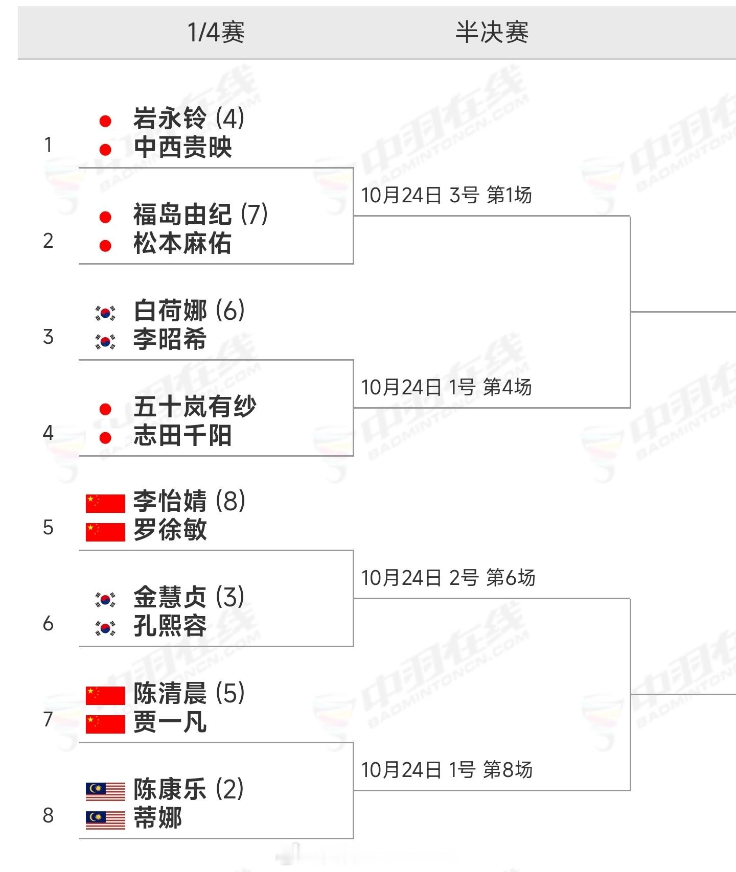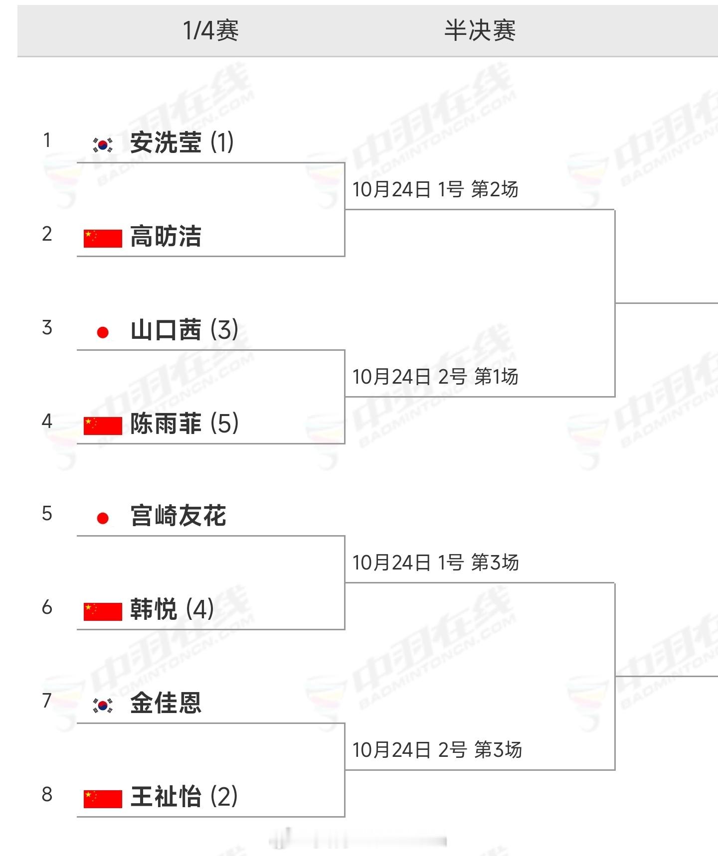 国羽🇨🇳女单和大马🇲🇾男双4席占据半壁江山
