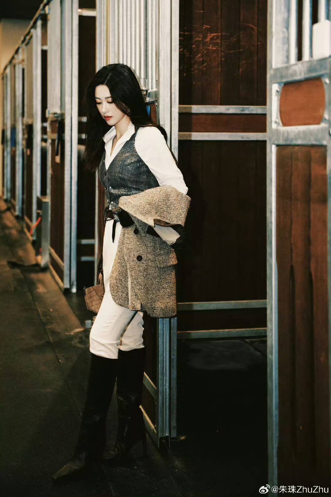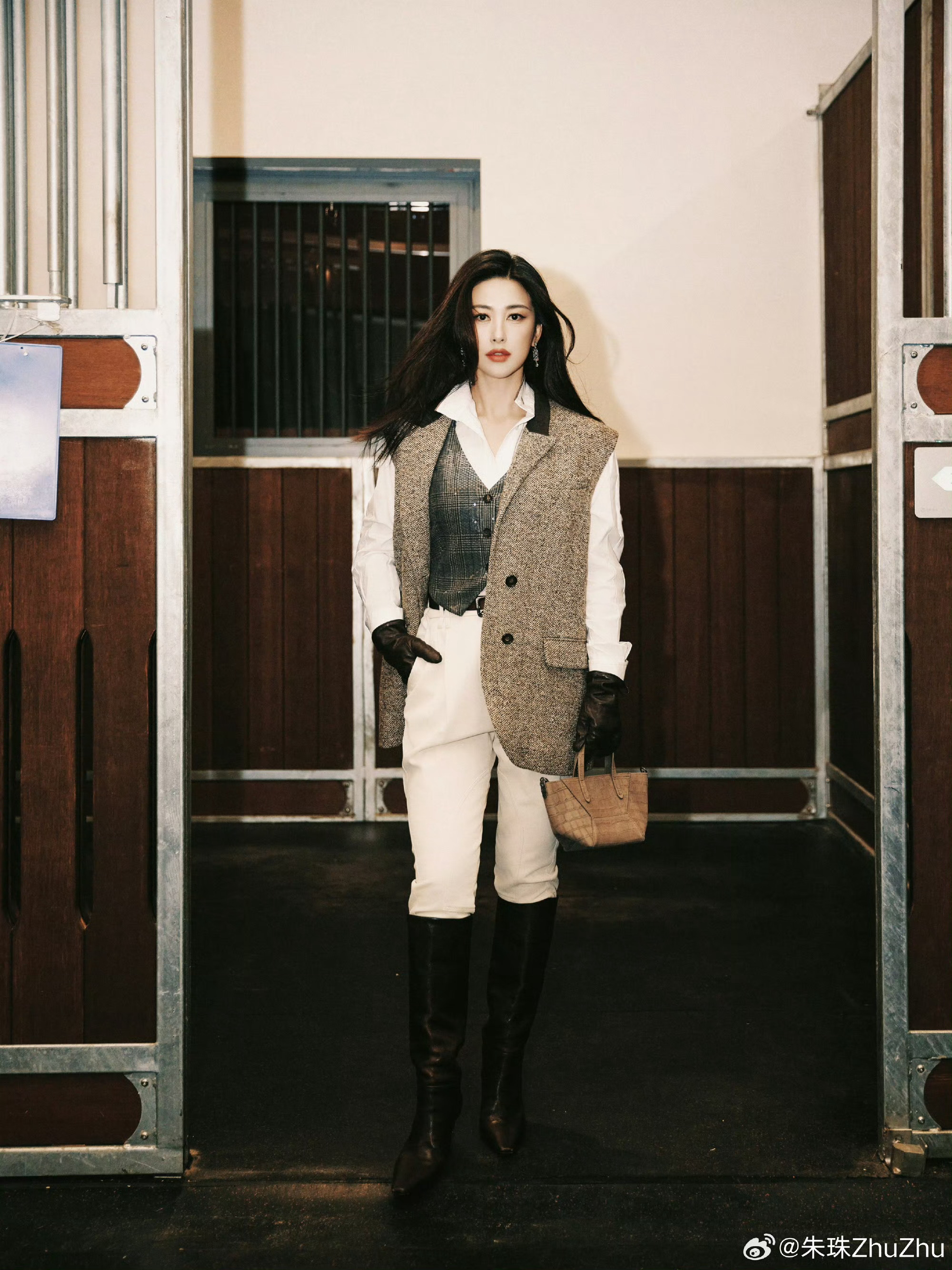 朱珠马场晚宴穿对了朱珠这身骑马装look太适合马场晚宴了,复古的浪漫裹着旷野的随性,自在融入的松弛感太迷人,既贴合场合又美得精致,完全踩中了场合的调调