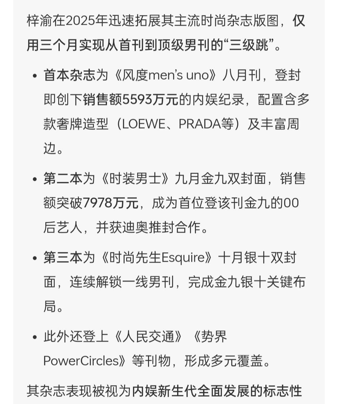 恭喜梓渝杂志版图再添一城🔥不到三个月的时间里解锁六刊十二封 ,五大占二 、涵盖金九银十 一线男刊!成为年内首位同时解锁五大男刊金九银十封面的零零后艺人!实力表现力MAX!