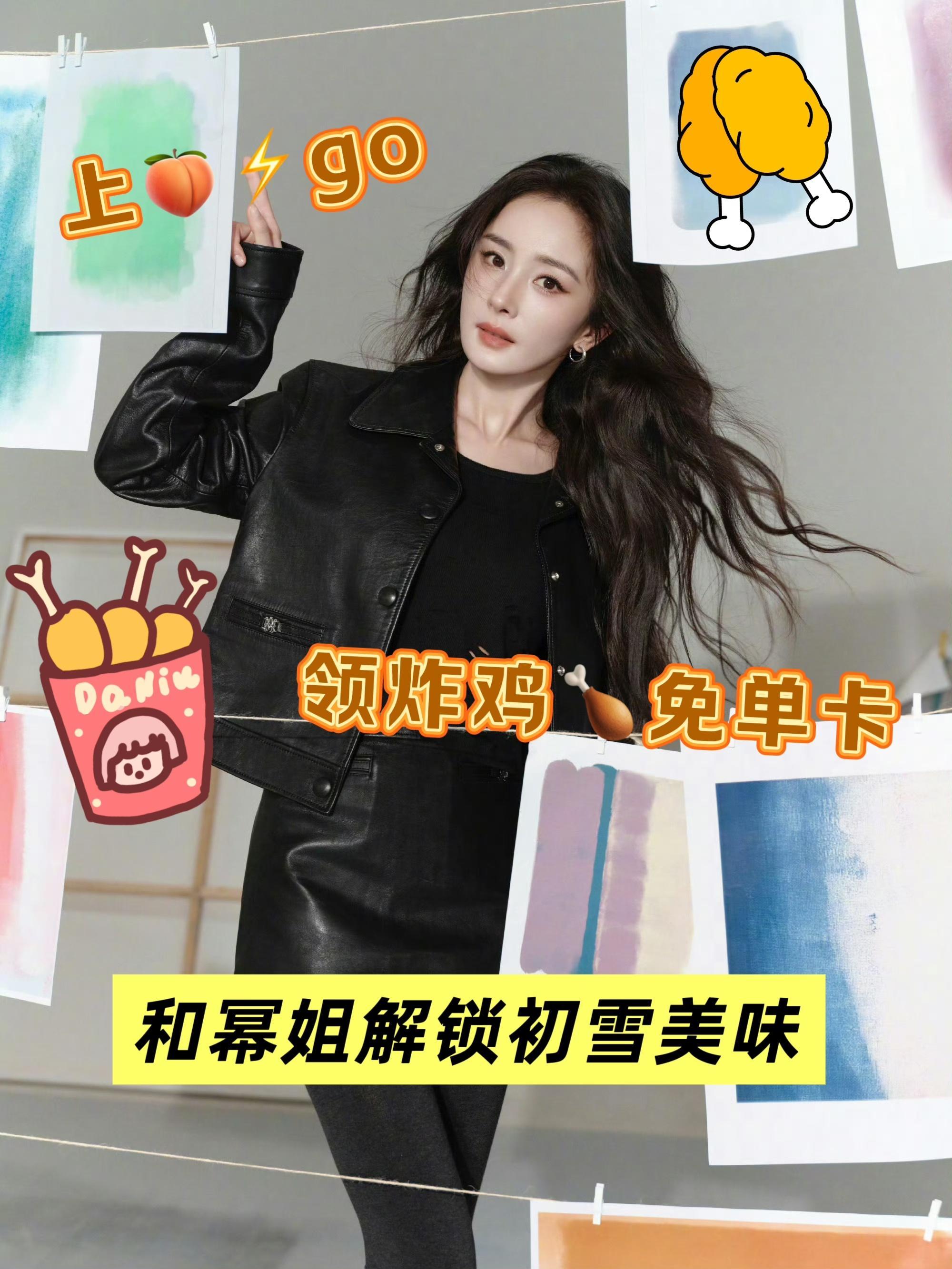雪花飘落的季节已到,福利也会准时抵达!快和杨幂淘宝闪购代言人 幂幂一起,在初雪天解锁炸鸡免单卡吧~上🍑搜【525W29】查收炸鸡免单福利! 初雪上淘宝闪购吃炸鸡 10月23日-11月14日,上🍑搜【闪购初雪】,淘宝闪购全国巡雪 你的城市下初雪的次日,🍑⚡go 会为下雪城市派送专属炸鸡免单卡,让暖意与美味同行!