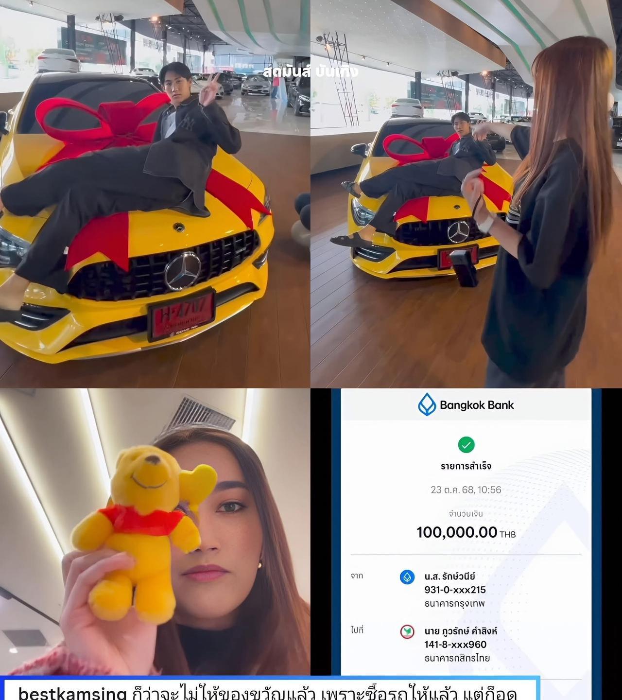 #泰国娱乐# 真的是太宠弟弟了。。Best送给弟弟的生日礼物,除了一台豪车之外,又加送了贝克汉姆签名的衣服和10万铢现金。。