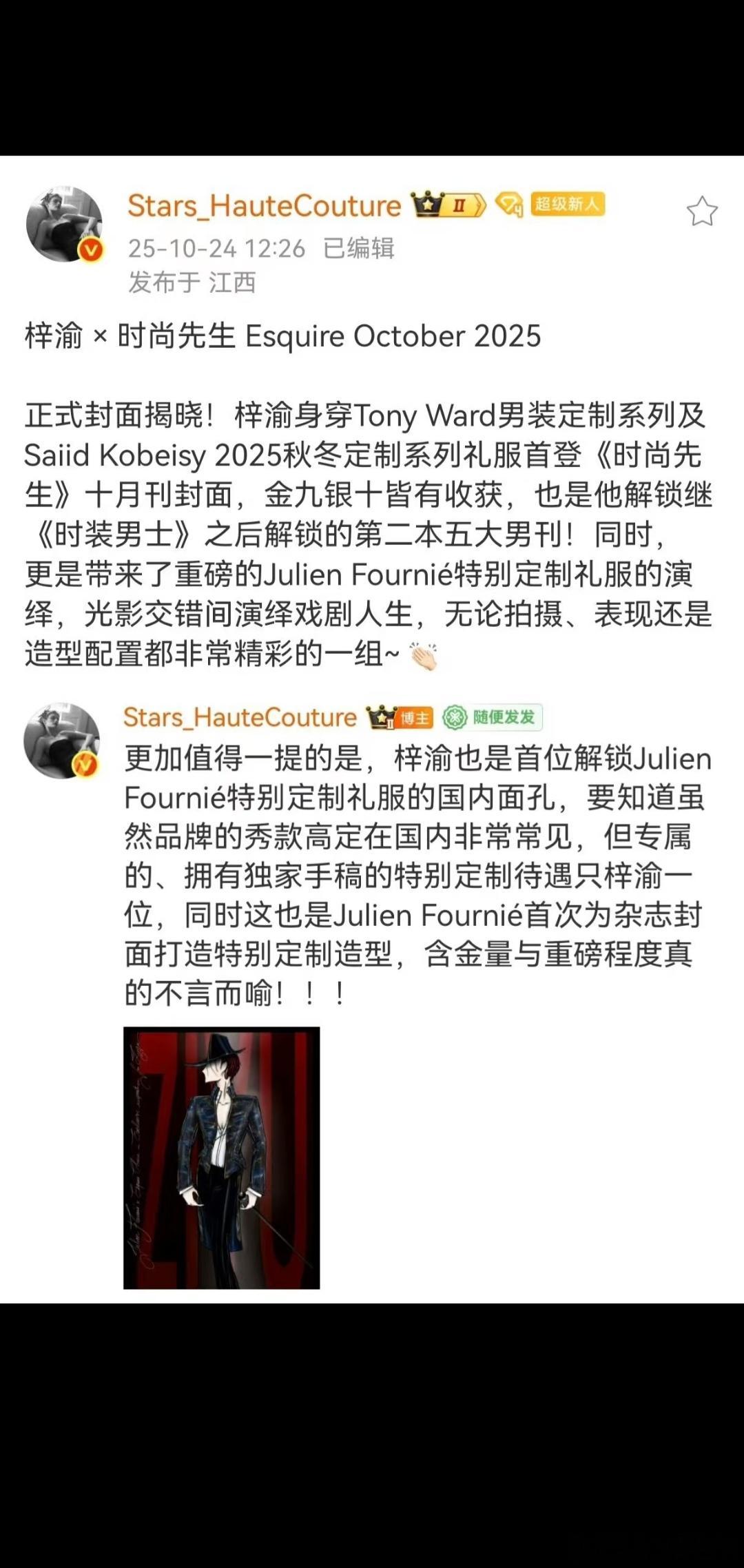 ✅特别定制 首位且唯一解锁高定品牌 Julien Fournié【特别定制】造型的国内面孔