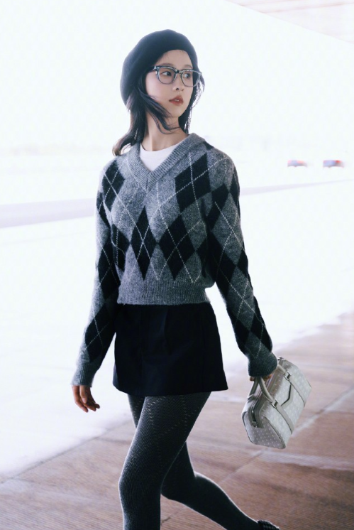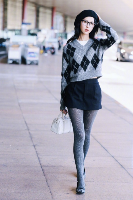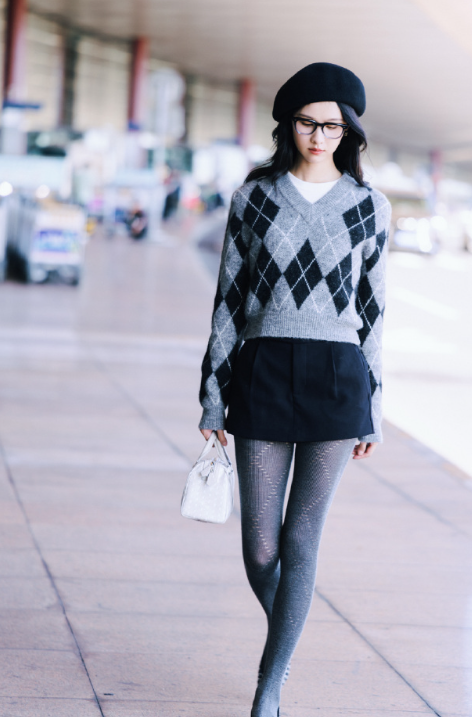 陈都灵的毛衣小黑裙灰丝袜穿搭,秋光烂漫很时尚!
