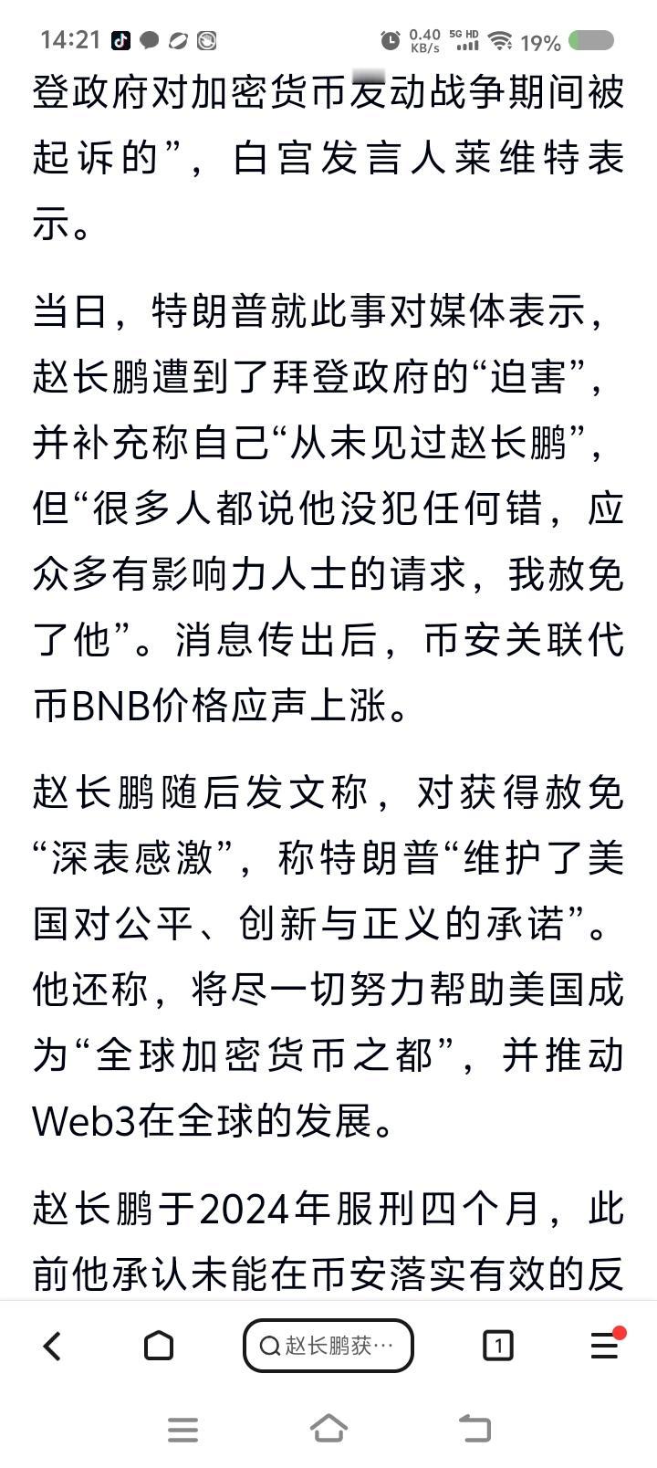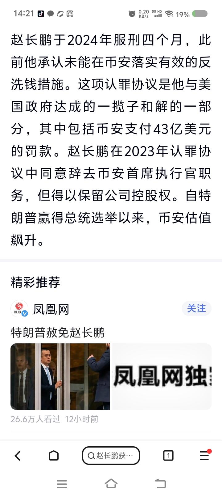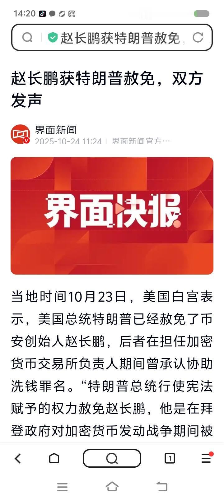 43亿美元的罚款?—— 据报道,商业人物赵某被特朗普赦免。特朗普称,他未见过赵某,他遭到拜登政府的迫害。之前,赵某服刑4个月,被罚43亿美元。赵某感谢特朗普对维护美国公平、创新、正义的承诺,全力以赴助美国成为“加密货币之都”。 点评: 一、既已服刑,何来赦免? 二、台湾省媒体人说,特朗普集团炒币获利丰厚。不知道与此有关么? 三、美国政客直白又虚伪。贪婪是赤裸裸的,又找各种理由。