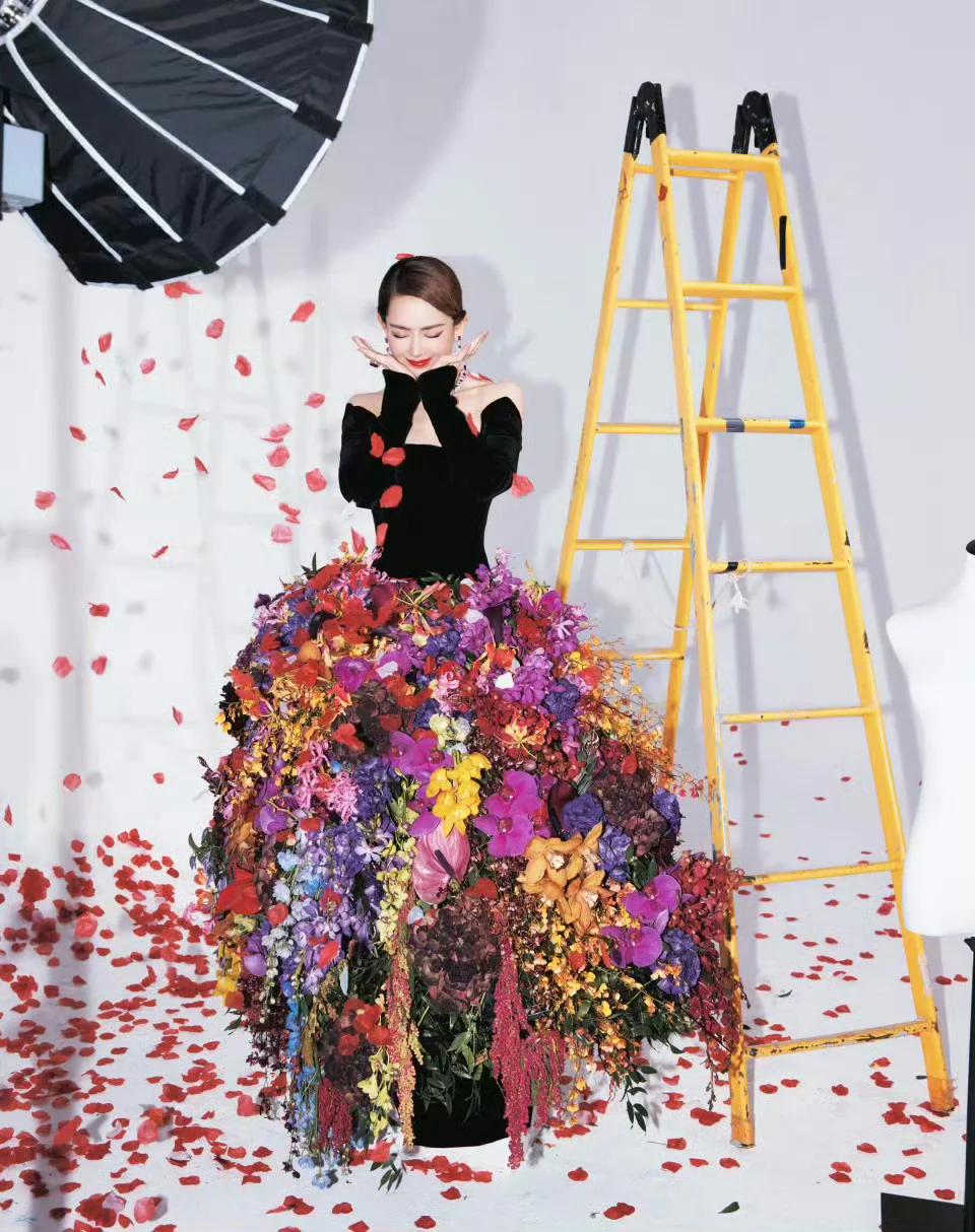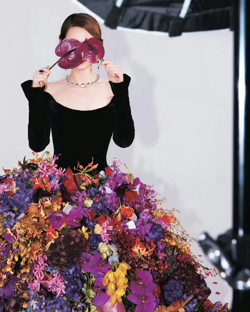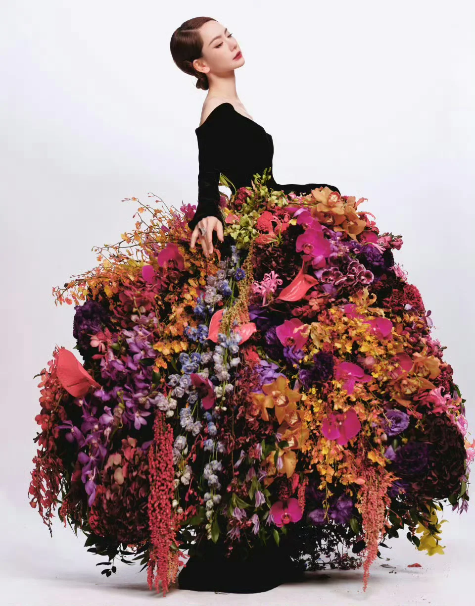 戚薇 今日 #VOGUE时尚之力盛会# 造型,惊喜的携手世界最顶级的花艺艺术家“AMKK东信花束”合作,把花卉装置打造成一条裙摆,与Mugler黑丝绒礼服结合,整个look用了30种东方的花材,均为当日制作。再配上典藏级的红宝石高珠,纷繁明艳的曼妙身姿,芬芳浪漫不失优雅,完美诠释「百花齐放」红毯主题,绝对是用心又美丽的呈现。#女明星VOGUE盛典造型出图##vogue盛典#时尚表现力 #时尚大片 #时尚视觉盛宴 #戚薇 #戚薇同款 #戚薇穿搭 #戚薇来了