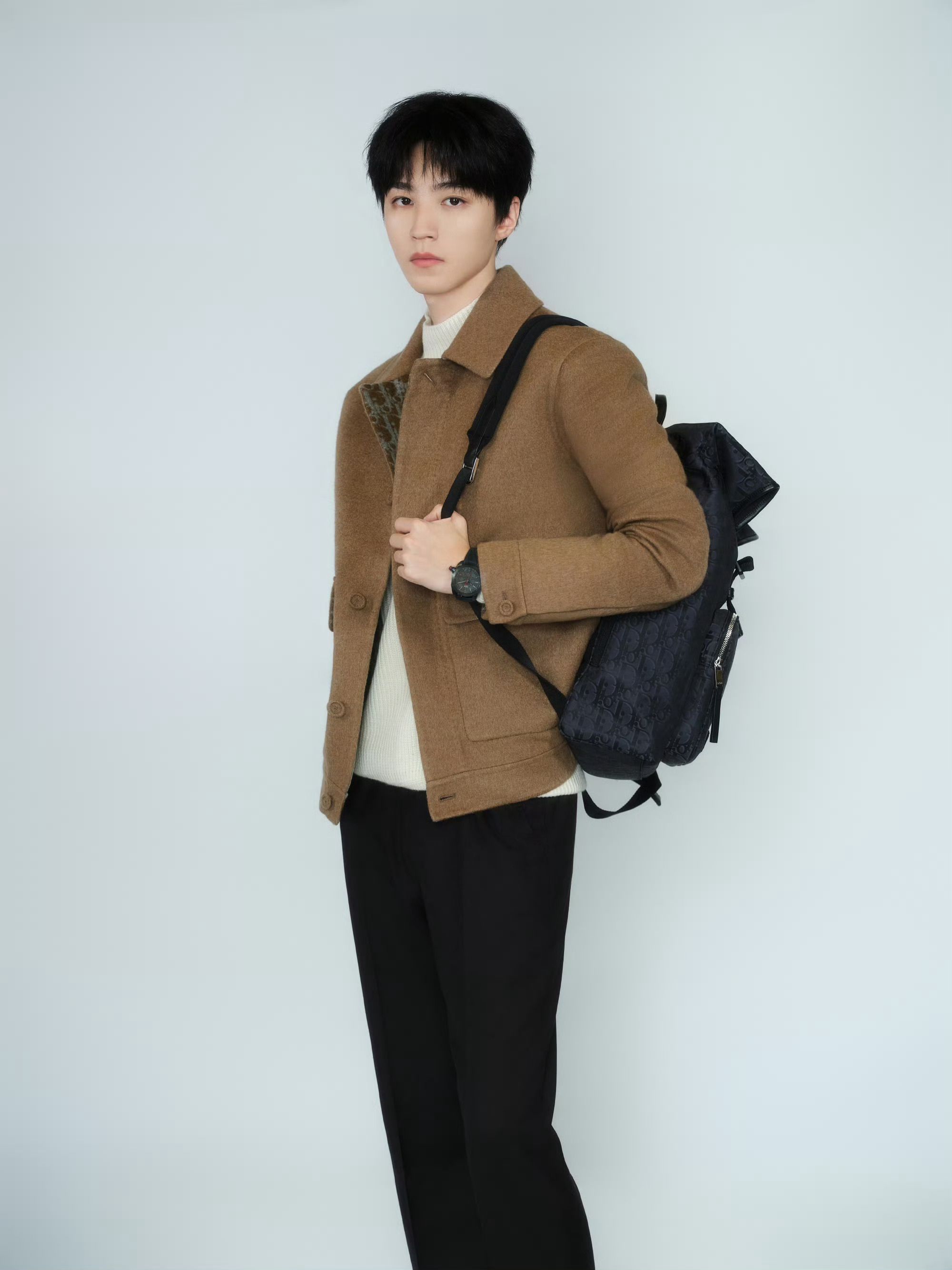王俊凯背包照梦回庄文杰王俊凯新鲜造型图背包+棕色外套,梦回庄文杰了[awsl]