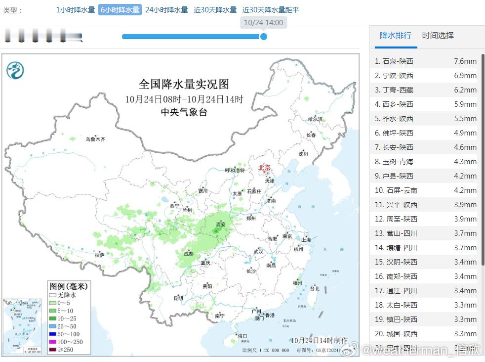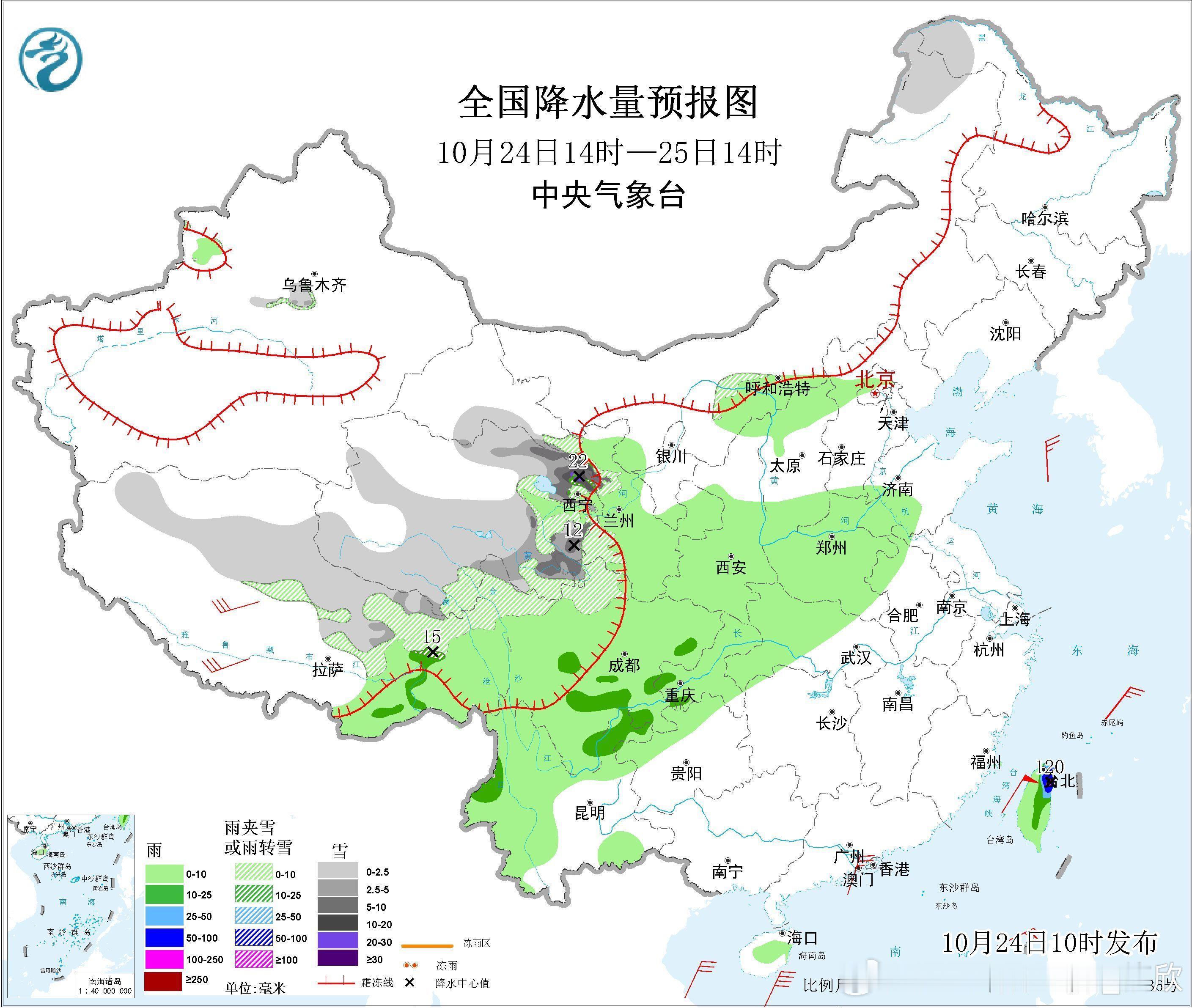 【降水】今天08-14时,台湾北部在东北季风气流+地形抬升影响下,局地还有超50毫米的降水。在大陆地区,今天08-14时,降水较弱,没有国家气象站超10毫米。今天下午到明天中午,雨雪会增多。青海东部和南部、西藏北部、四川西北部等地可能出现降雪,青海东部局地有暴雪。此外台湾东北部还有大雨-暴雨,局地大暴雨。