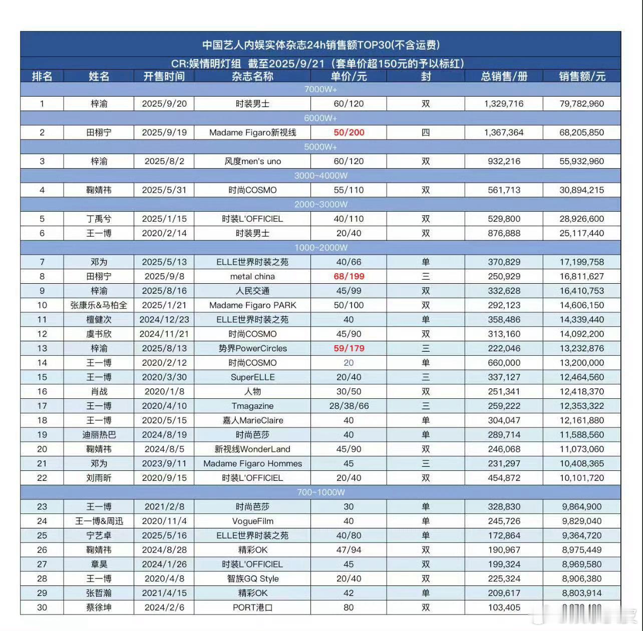 梓渝内娱TOP7梓渝《时尚先生》杂志不到1小时销售额高达1780万+,登上内娱总榜TOP7,这商业价值简直无敌了[赞]