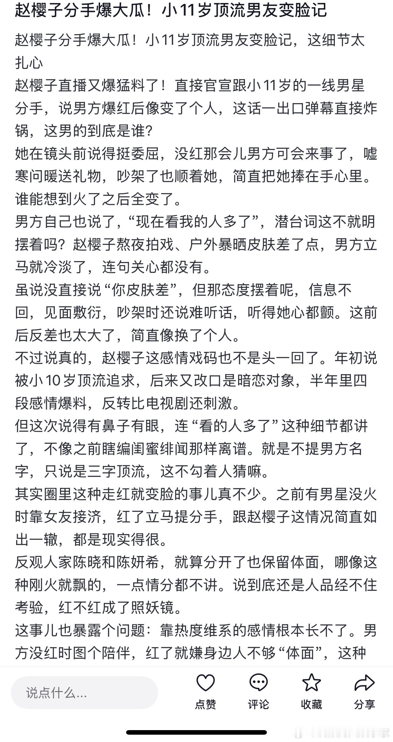 实在不行一律按张大大处理。反正赵樱子开始做网.红,成天尽说些似是而非的东西给自己引.流……赵樱子官宣分手赵樱子男朋友 小11岁的一线男星