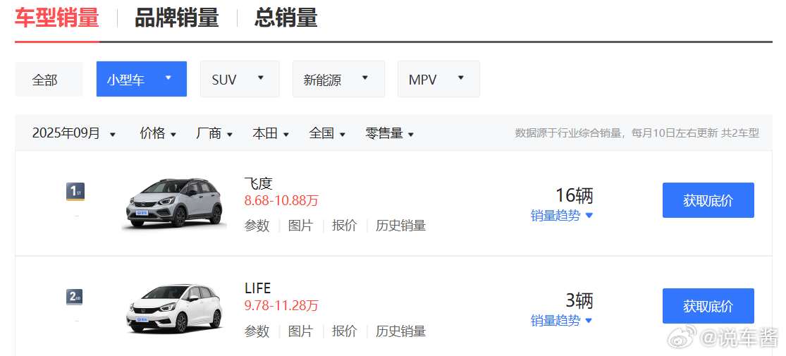 9月飞度和Life加起来在中国内地市场卖了不到20辆……这车看来是真没人买了……
