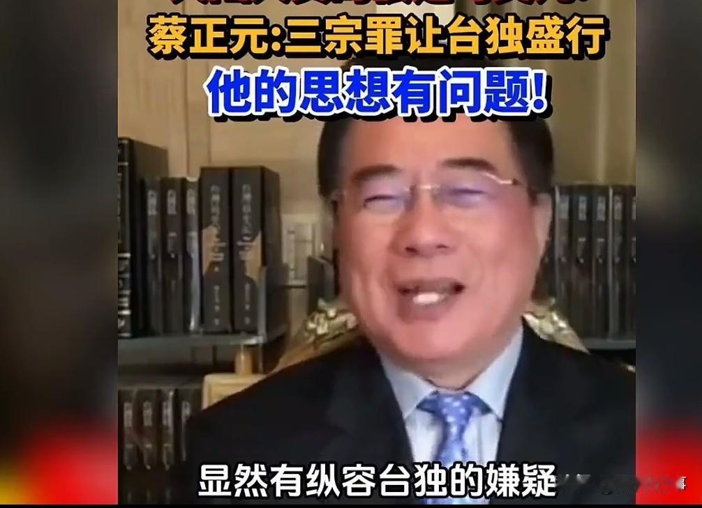 蔡正元:如今台湾台独盛行,马英九有三个方面的责任。 蔡正元在视频中表示,马英九在当台湾地区领导人的时候,有纵容台独的嫌疑,表现在三个方面: 第一,马英九上任之后,就通过了台独课纲,让台湾的历史教科书、地理教科书都变成了一个很标准的台湾中心主义者教科书,而且在教科书里面大幅度去中国化。 第二,每年的2月28日,都会穿黑色西装带黑领带去参加绿营跟民进党所举办的纪念活动,即二二八事件,民进党把它视为台独的重要历史事件,马英九有帮它宣传,垫高的作用,使得今天台独气焰嚣张。 第三,马英九重用非国民党人,而且有台独倾向的,明明是出身台独政党的人担任很多重要公职,任用的陆委会主委叫赖信元,就是100%台独。 总之,马英九的思想思路有问题,才造就了今天台湾台独盛行,嚣张!
