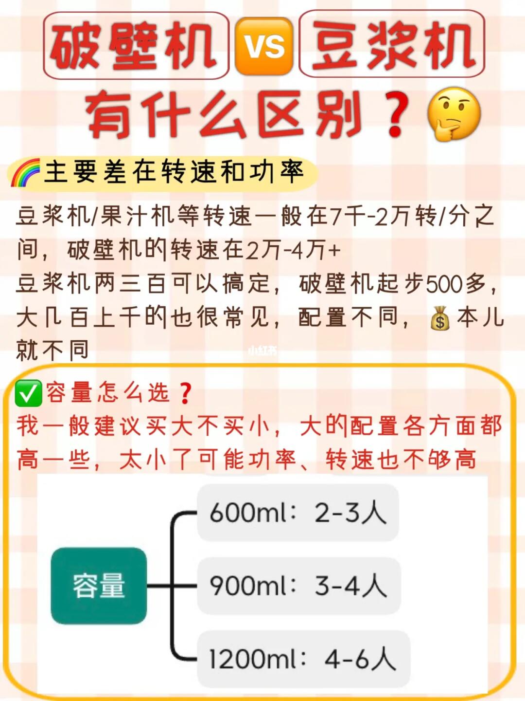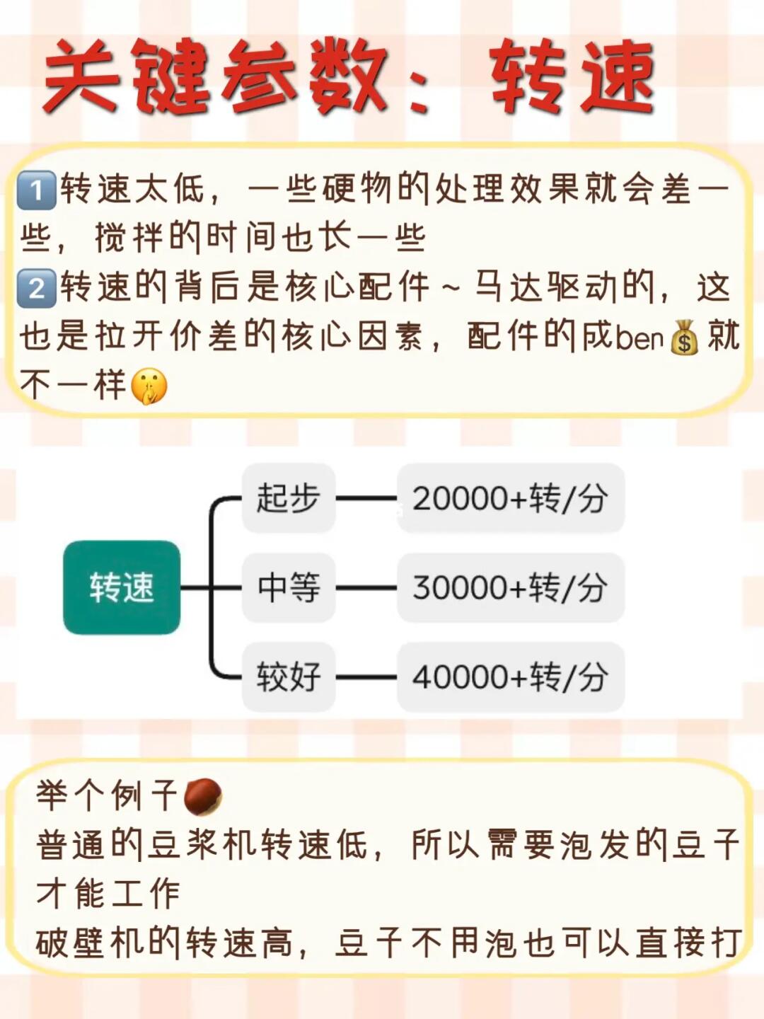 2⃣️豆浆机/果汁机,转速一般在7千-2万转/分之间,破壁机的转速在2万-4万+
