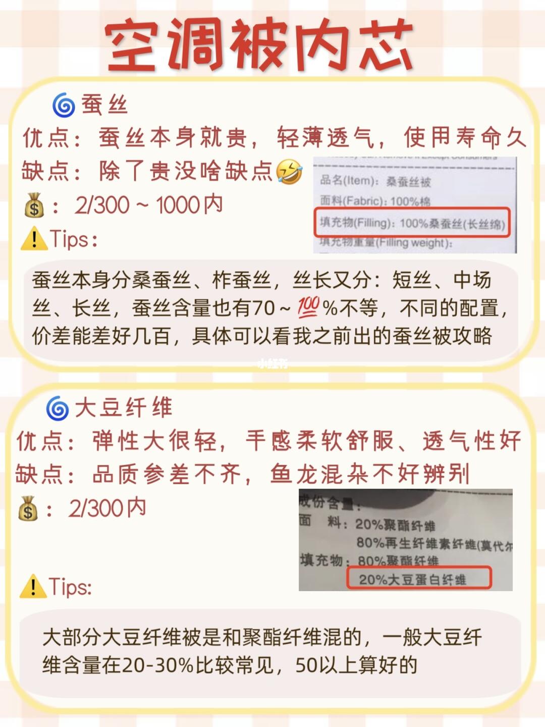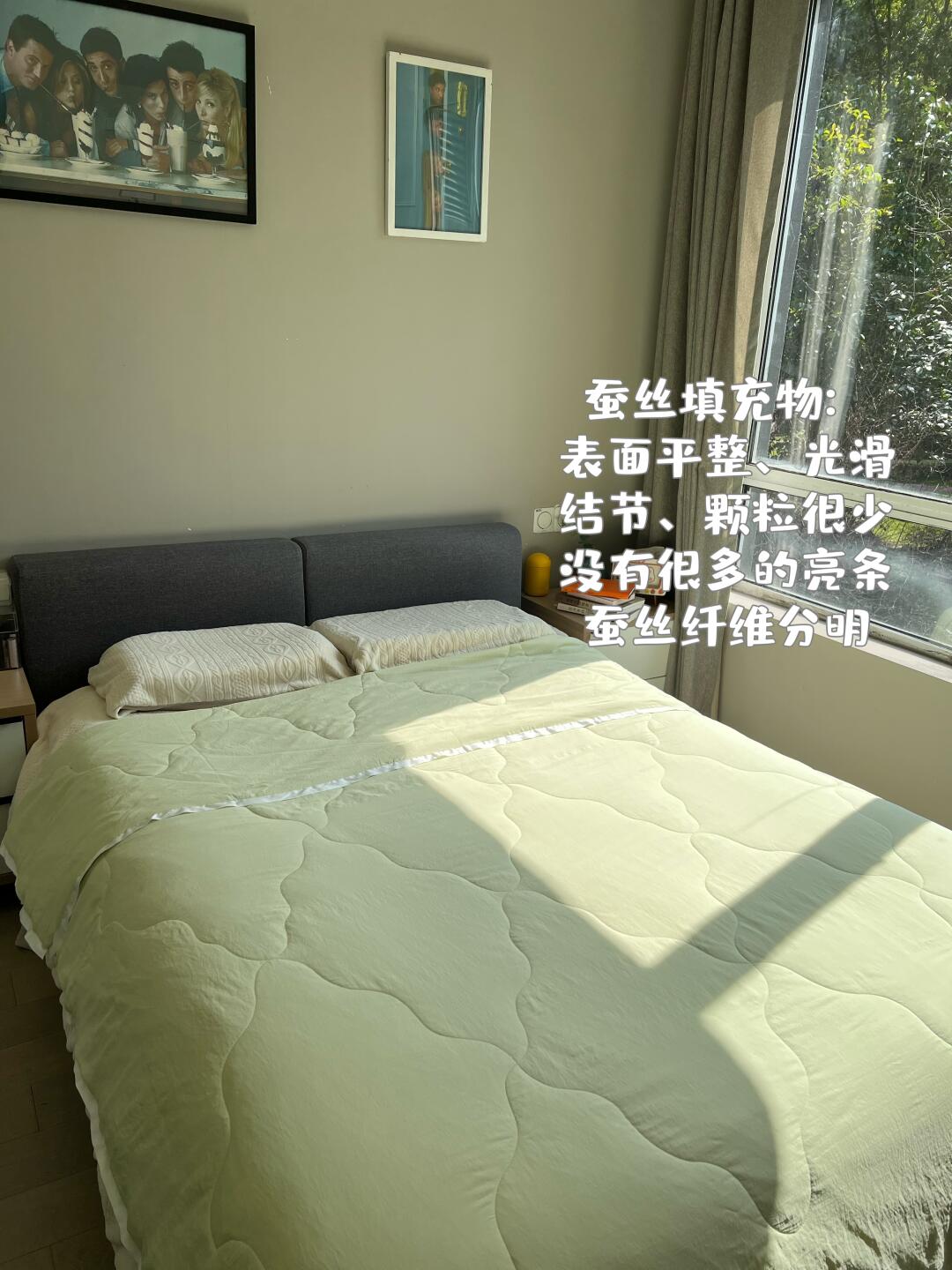 tips:蚕丝本身分桑蚕丝、柞蚕丝,丝长又分:短丝、中场丝、长丝,蚕丝含量也有70~💯%不等,不同的配置,价差能差好几百,具体可以看我之前出的蚕丝被攻略