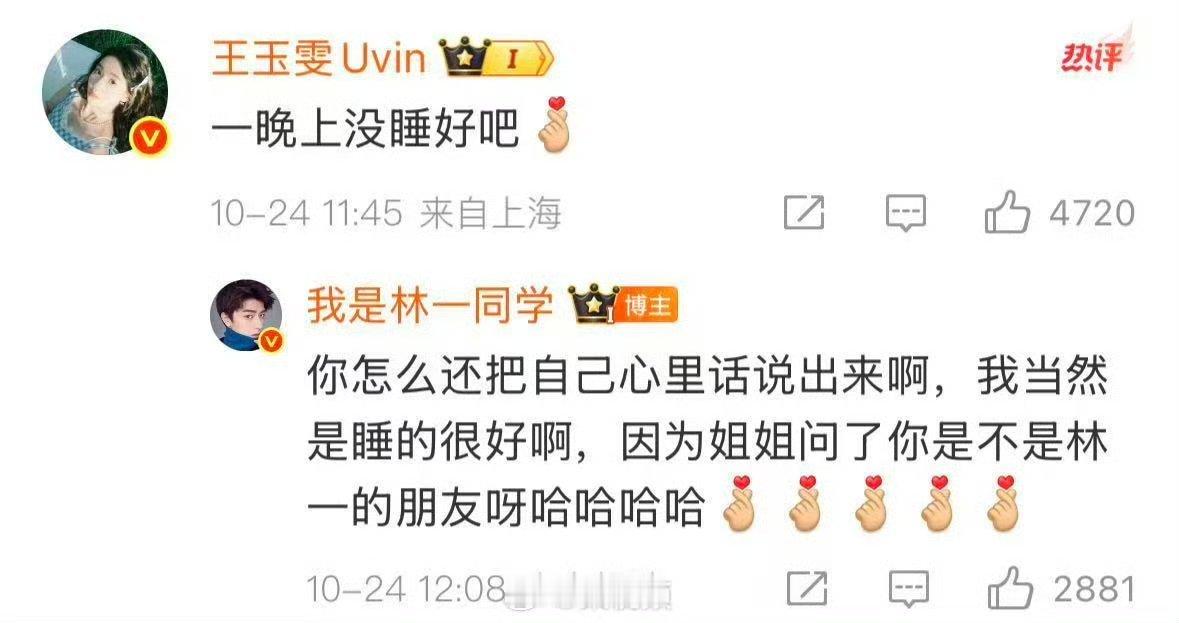 天呐 我都替林一感到开心,在自己喜欢的偶像那里也是有姓名的,看到你的朋友就会想起你,追星成功了!刘亦菲问王玉雯是不是林一朋友