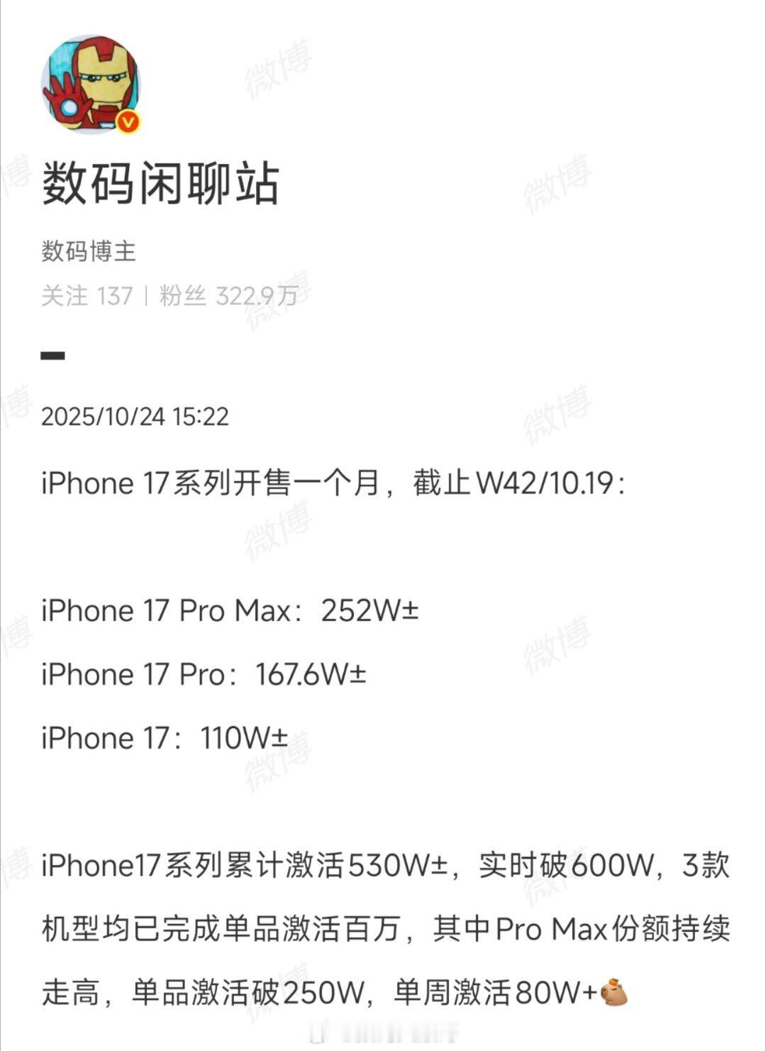iPhone17全版本激活量曝光凭实力领跑,激活数一路走高;而定位性价比之选的标准版17,反而成了激活量最低的机型。这数据足以证明,果粉为核心旗舰买单的意愿从未减弱~