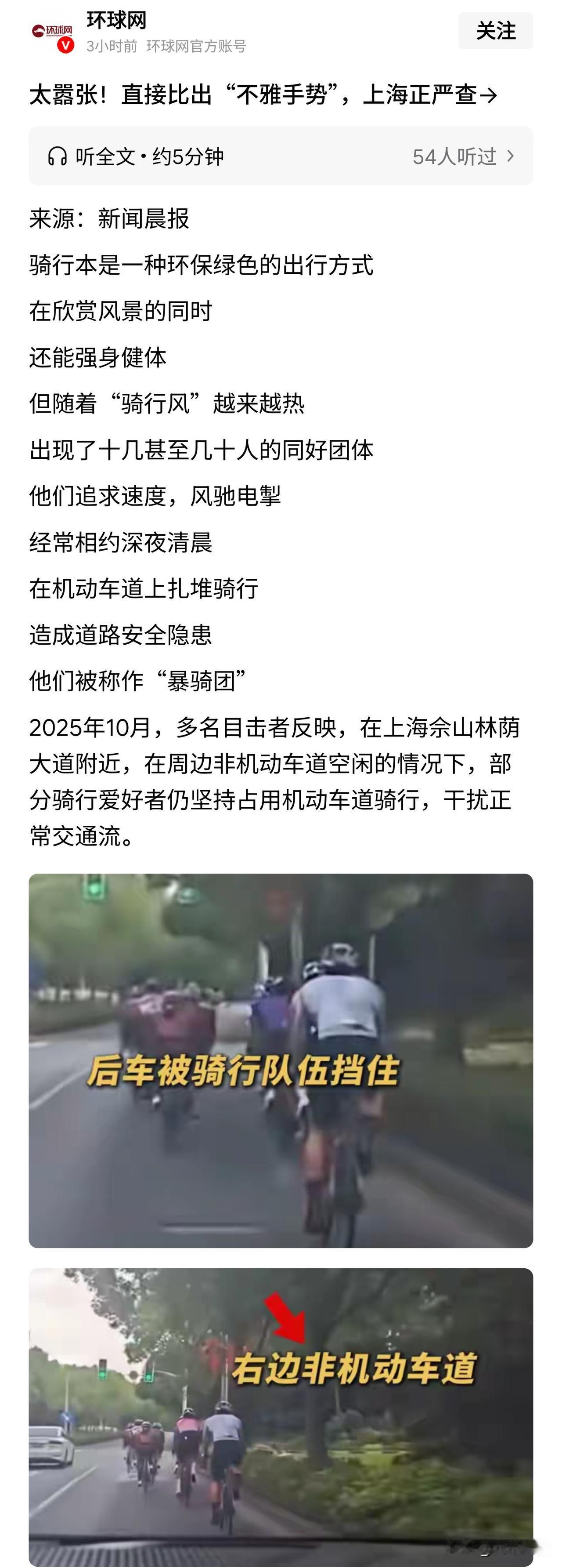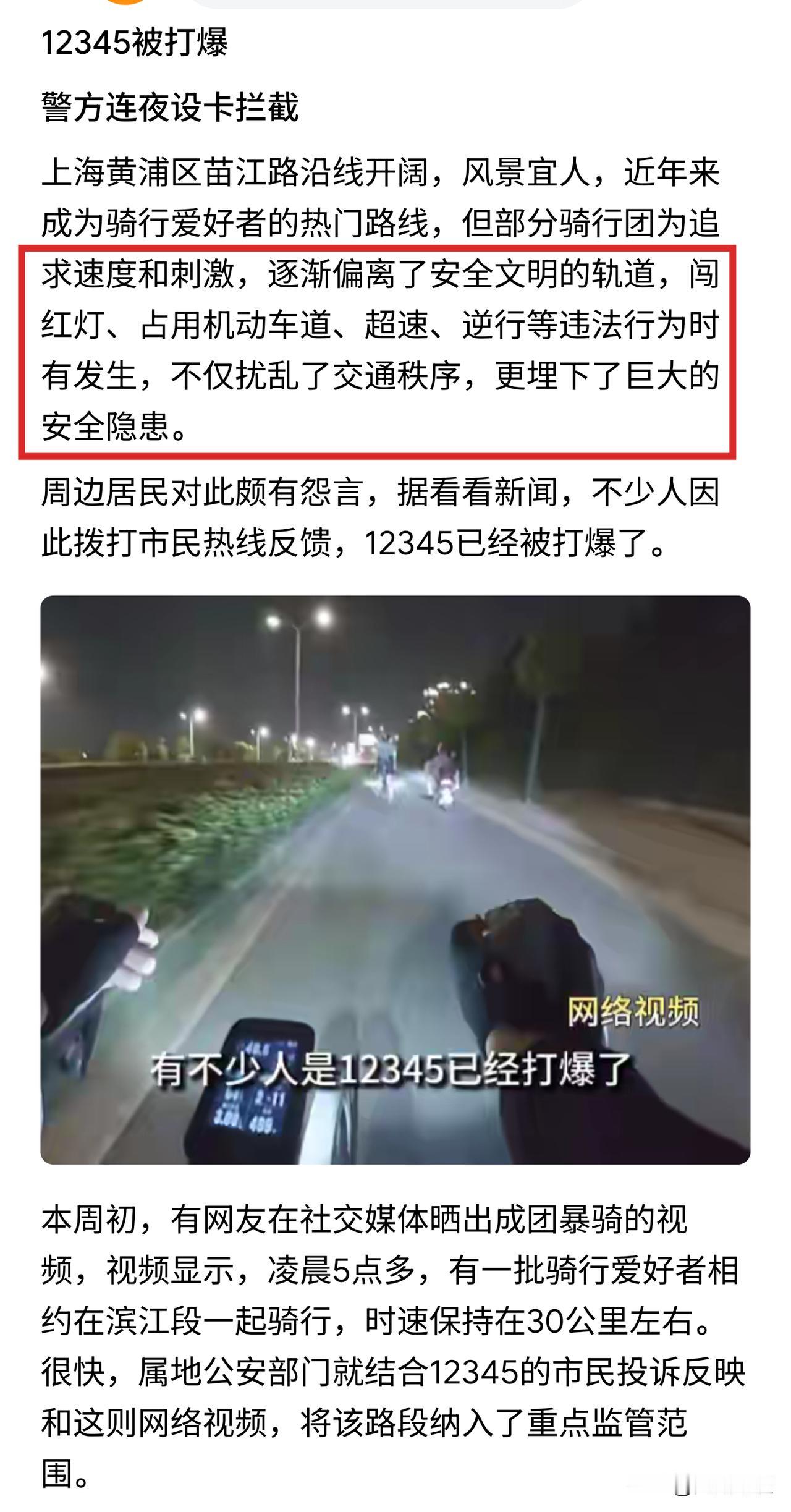 给上海叔叔点赞!魔高一尺道高一丈,运用高科技手段,把竖中指挑衅正常行驶车辆,又屡屡凌晨扰民的暴骑组全都拿下! 实话实说,骑行的基本上没有几个是严格遵守交通规则骑行的。 为了速度快点,经常走机动车道,闯红灯。 从道义上讲暴骑团还不如外卖小哥,人家外卖小哥好歹是为了生活努力跑单赚钱。 而暴骑团打着健身的幌子,到处横冲直撞,要骑就去郊外骑,不要在市内骑。 反正我对骑行的没有什么好感,虽然一个个都是身材好,男的又高又帅,女的又高又靓的。 奈何为了一己之私到处乱骑,影响其他正常的交通参与者,甚至还发生过在人行横道上撞倒过正常过街的行人。