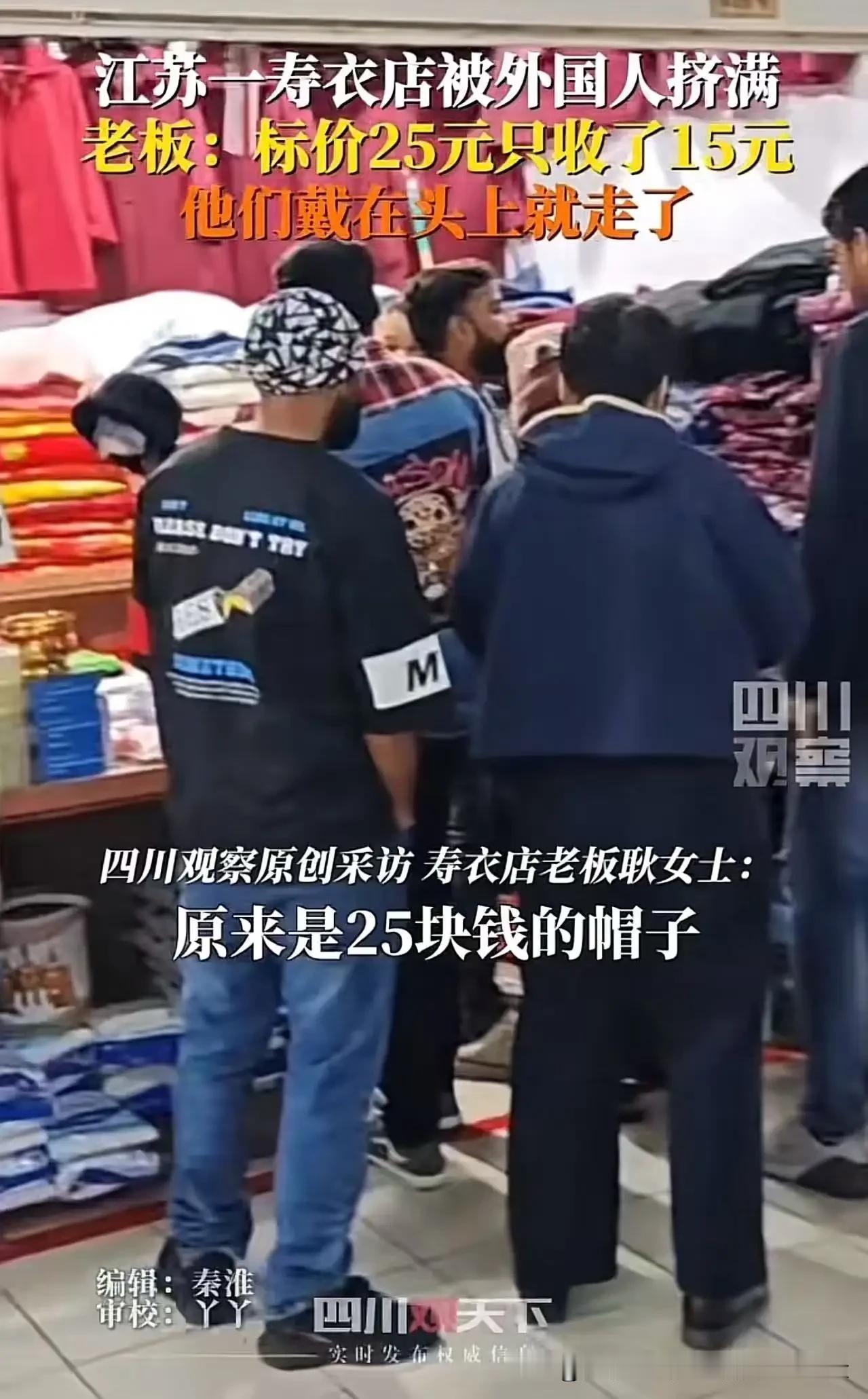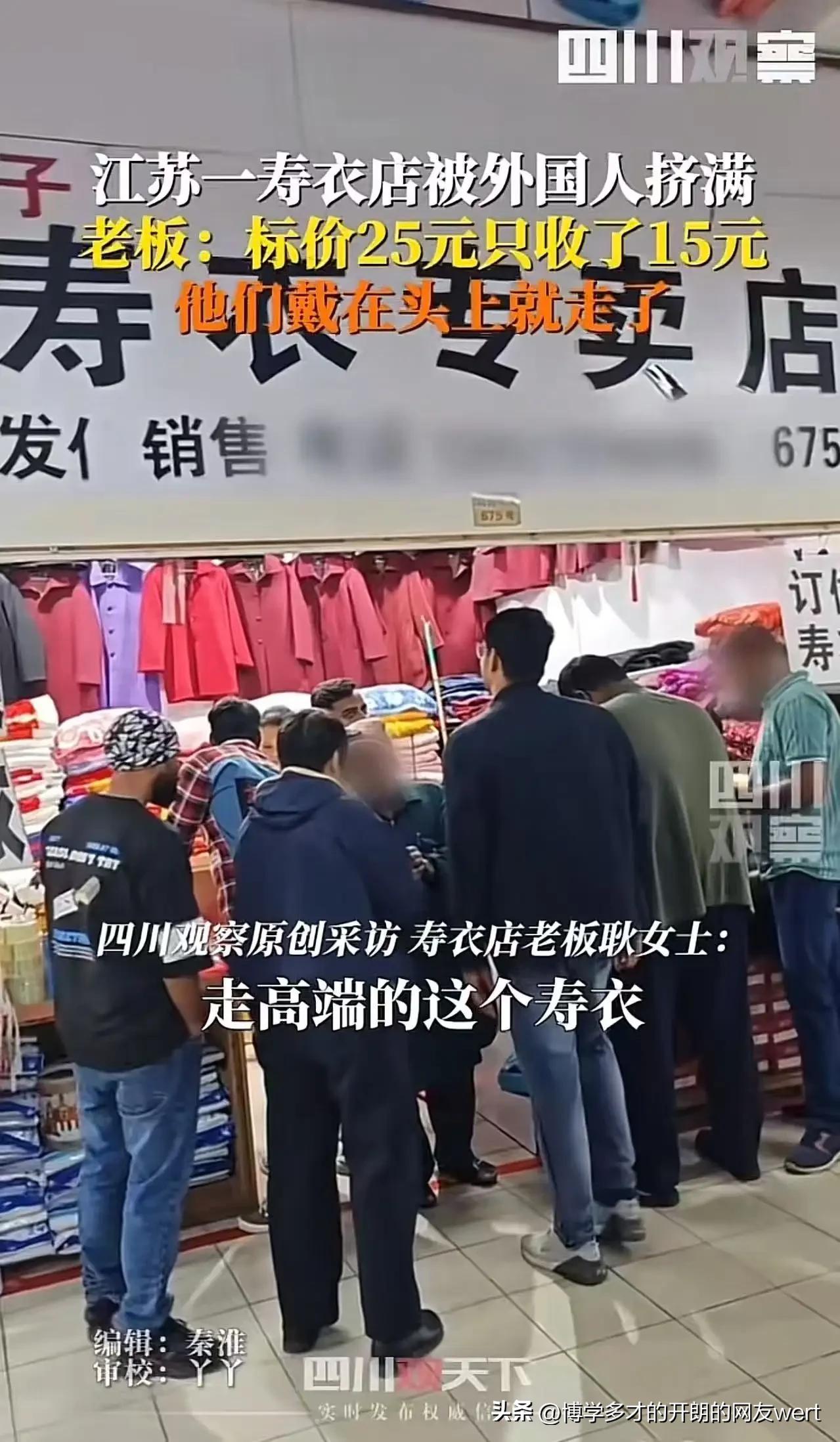 “洋相还得洋人出!”江苏镇江,一群老外扎堆在寿衣店试穿,嘴里不停嘟囔“amazing”!最后心满意足地买了4顶帽子!网友:中文:这是寿衣。英文翻译:长寿的人穿的衣服。老外:OK非常OK! 这场“洋人试衣事件”在网络上掀起了轩然大波,也让我们再次思考:文化差异到底能带来怎样的“误会”与“趣味”?表面上看,这只是一群外国人在中国小城镇的一次“异国体验”,但背后却隐藏着更深层次的社会心理和文化认知的碰撞。 试想一下,一个普通的寿衣店,竟然成为了“国际舞台”。外国朋友们满眼新奇,手里拿着帽子,嘴里不停地发出“amazing”的感叹。或许他们觉得:这些“寿衣”看起来像是某种特别的“时尚”单品,甚至把“长寿”理解成一种“潮流”的象征。而我们呢?可能只觉得他们的行为“怪异”,甚至有点“搞笑”。但实际上,这正是一面镜子,折射出中外文化认知的巨大差异。 这件事情的背后,透露出一种令人深思的“文化错位”。在西方文化中,长寿是幸福、安康的象征,寿衣也许只是一种传统服饰的延续。而在中国,寿衣代表着对逝者的尊重与纪念,带有浓厚的文化和情感色彩。外国朋友们的“洋相”,其实也反映出他们对中国传统文化的好奇和尊重,只是表达方式不同而已。 更令人感慨的是,网友们的反应也极具代表性。有的调侃:“洋人还得洋人出!”有的则在评论中吐槽:“文化差异太大,真是笑中带泪。”但无论怎样,这场“闹剧”都让我们意识到:在全球化的今天,文化的交流和碰撞变得前所未有的频繁。我们需要的,不仅是包容,更是理解。 或许,下一次当我们遇到类似的“文化误会”时,不妨换个角度去看待。毕竟,世界那么大,文化那么多,正是这些差异,让我们的生活变得丰富多彩。我们不妨笑一笑,或许还能从中找到一些温暖和启示:在这个多元的世界里,理解与尊重,才是最美的“洋相”。 这件事提醒我们:无论你来自哪里,文化的多样性都是人类最宝贵的财富。只要我们用一颗包容的心去看待差异,世界就会变得更加宽广而美好。你怎么看?是不是也曾因为“文化差异”而哭笑不得?欢迎留言分享你的故事,让我们一起在笑声中学会更好地理解这个世界。外国人穿寿衣 老外服装 老外对衣服热爱