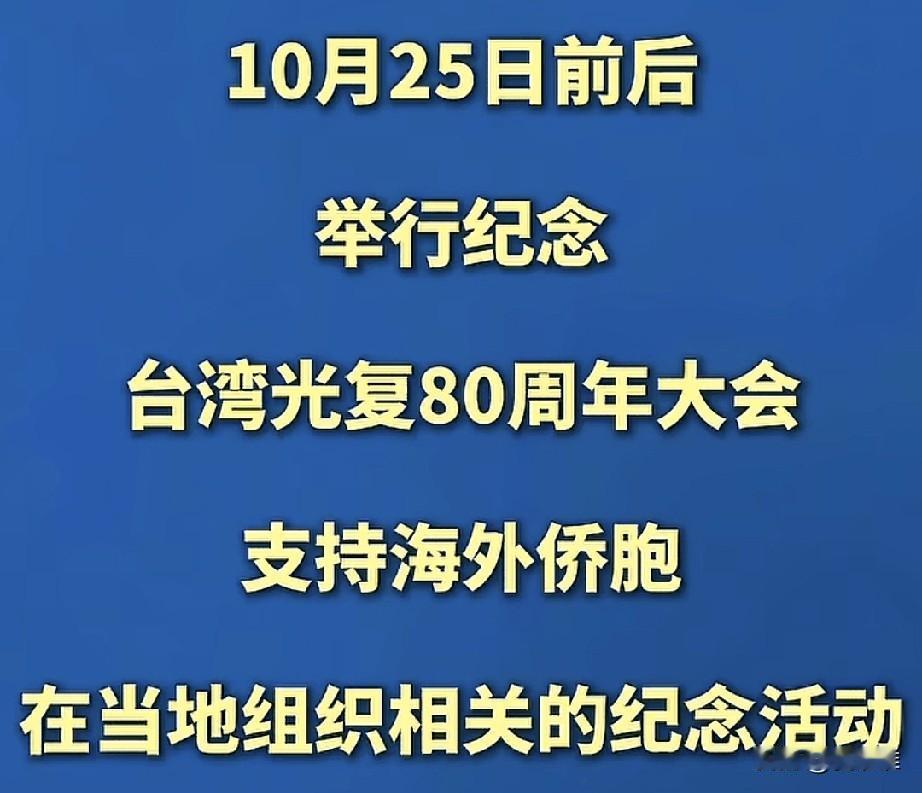 好消息,全国人大常委会将每年的10月25日定为台湾光复纪念日,意义太重大了,台湾光复是全体中国人民抗日战争胜利取得的重要成果,是两岸同胞共同的大喜事,设立纪念日是表明台湾是中国不可分割的一部分,任何人不容篡改历史,歪曲历史,台湾回归指日可待,祖国统一指日可待!