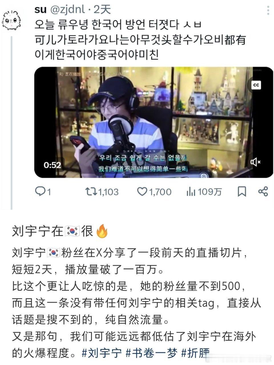 而且刘宇宁很真诚,综艺里可以看出来性格不错,属于红了也是很谦虚的那种。这哥真的值得!!刘宇宁直播切片在韩国火了热点观点