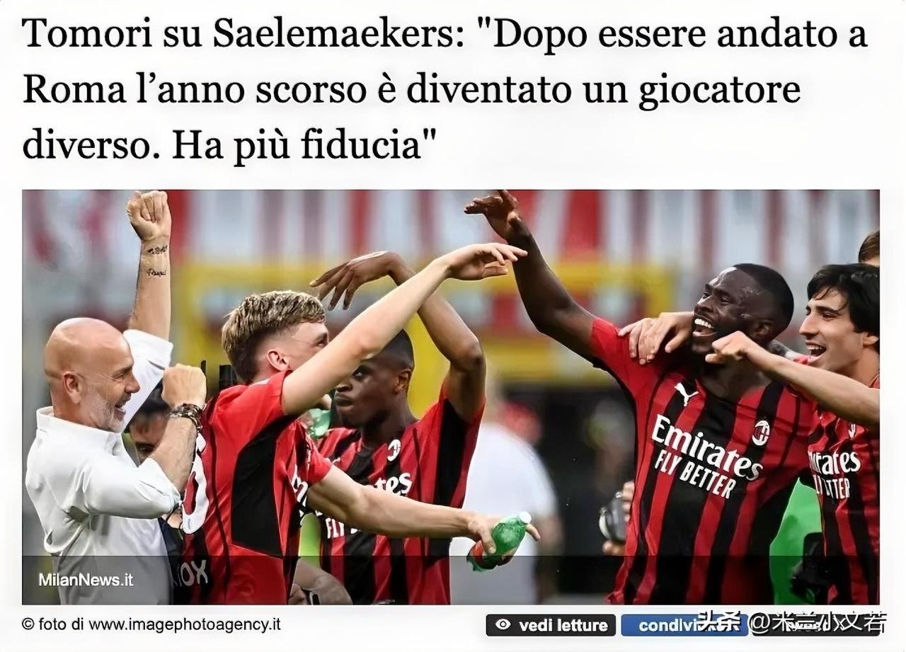 萨勒马克尔斯!米兰赛前采访菲卡约·托莫里表示米兰与比萨之战是一场艰苦的比赛,我们有多位关键球员无法出场,但我相信我的好友萨勒马克尔斯会在比萨之战有所斩获,在训练中他的状态非常好。 托莫里说很高兴萨勒马克尔斯是我的队友,我们之前曾经共同获得过冠军,我们两个之间有深厚的友谊,和长期建立的默契。我们都知道彼此跑位的目的,同时我们都愿意为对方而奔跑。如果他站错位置,我就在他身后;如果我犯错,他也会补位。你要知道有这样的队友实在太棒了,自从去年去了罗马之后,他变成了一个不同的球员。这个是实话,萨勒马克尔斯在罗马完成了蜕变,他这次回来确实让人眼前一亮。 但是萨勒马克尔斯的令人眼前一亮是有局限性的,比如他只是在边翼卫位置表现出色,他客串前锋的比赛貌似依然是一般,这个就是之前所说的问题,萨勒马克尔斯很出色,但他只能踢边翼卫,后卫和边锋都不行,所以不如交换亚伯拉罕。本场比赛萨勒马克尔斯会回到他熟悉的边翼卫位置,而且他的身后是防守能力更好的德温特,期待本场比赛萨勒马克尔斯能有所斩获。