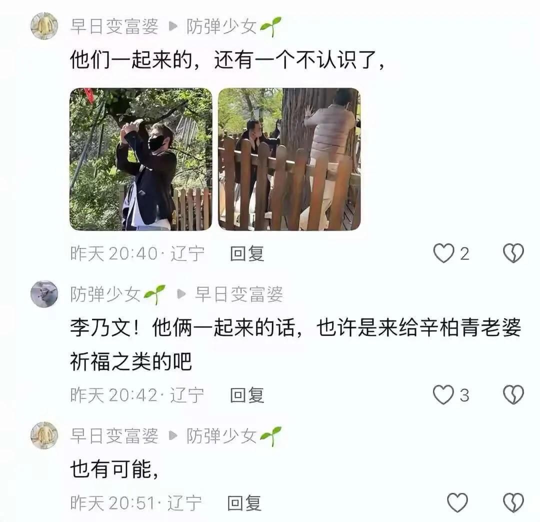 辛柏青现身大孤山为亡妻祈福!神态疲惫苍老消瘦,被女儿贴心搀扶,好友李乃文一路同行~ 朱媛媛去世5个月后,一直沉浸在悲伤中的辛柏青终于肯露面了!10月22日,有人在辽宁大孤山偶遇到携女祈福的辛柏青,照片中,他一身黑色基础款羽绒服配短发,戴着口罩,不仅没一点明星包袱,还很是低调随性接地气。只是围着千年银杏树默默转了好几圈的他,整个人肉眼可见的憔悴了不少,17岁的女儿辛芯仪一直陪伴着父亲好暖心,细看眉眼像妈。没想到,夫妻俩的同窗好友李乃文也来了,一身黑西服搭牛仔裤依旧是帅大叔一枚,估计这回多半是他拉着辛柏青一起出来的,想让他从悲伤中走出来,早日振作,好好生活吧!