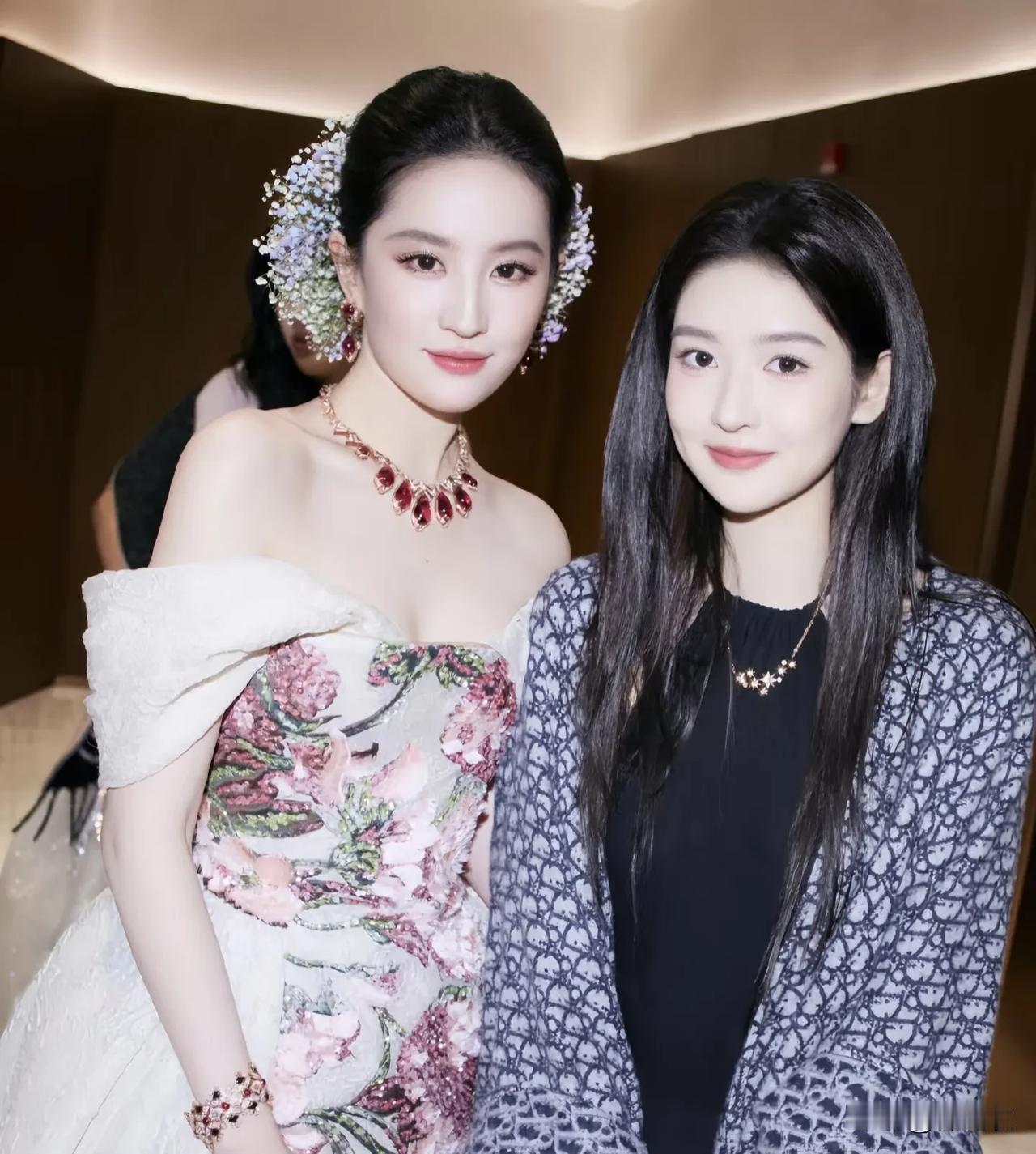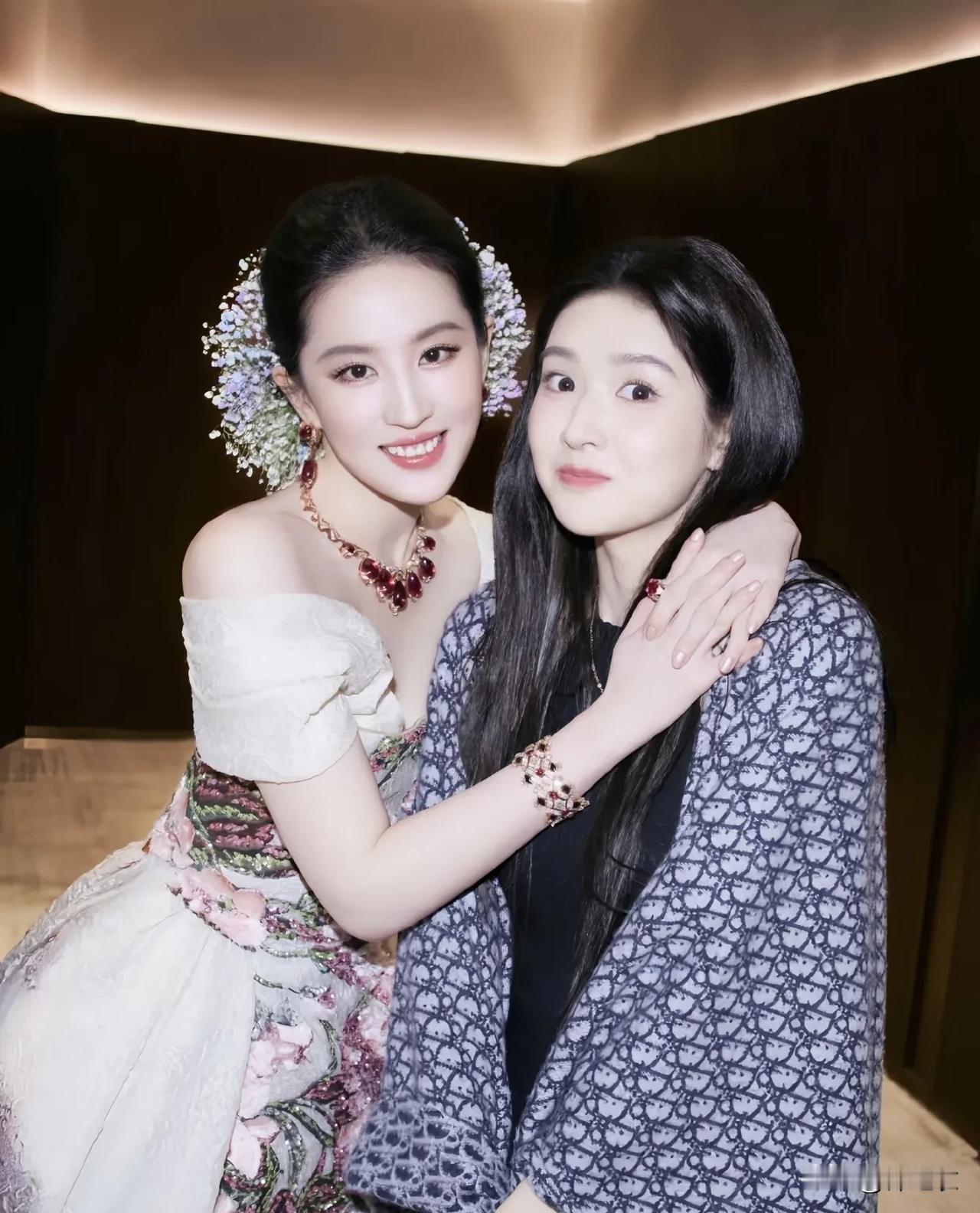 王玉雯和偶像刘亦菲合影,王姐的颜值竟然没输,而且她很适合素一点,显得皮肤好好啊! 当然也是因为她比刘亦菲年轻很多,再加上刘亦菲确实是名副其实的天仙姐姐。 但是我不喜欢天仙这堆珠宝,因为她是天然去雕琢,一堆珠宝反而把她衬托俗了。 不过明星穿什么衣服,戴什么珠宝,都是由品牌赞助。 而且看得出来王玉雯是真的很喜欢刘亦菲,毕竟刘亦菲是内娱很多明星的偶像呢。
