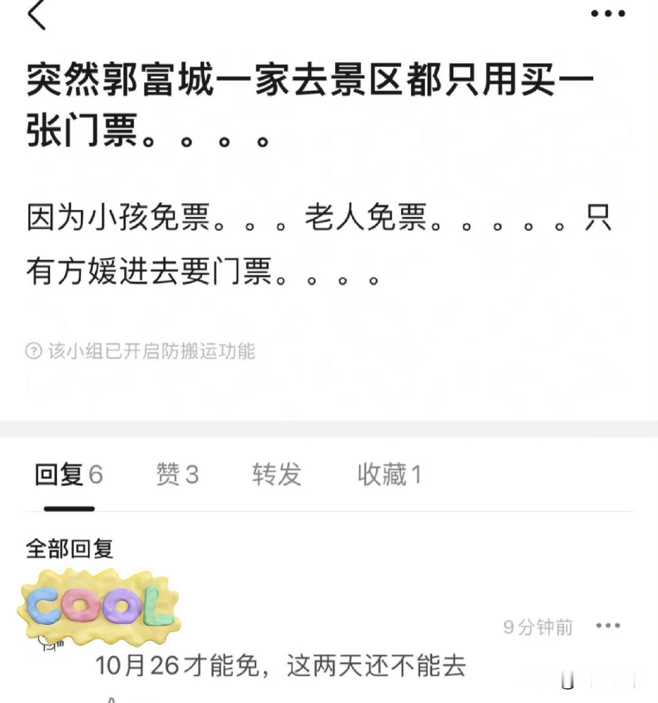 网友的嘴太损了,有网友说郭富城一家五口去景区只用买一张票,因为郭富城还差两天就60岁了,景区60岁老人免票,小孩也免票,就方媛进去要买票。 我不中了,一时分不清是在骂人还是夸人,终究是方媛扛下了所有, 网友的观察角度永远这么出其不意[捂脸][捂脸]