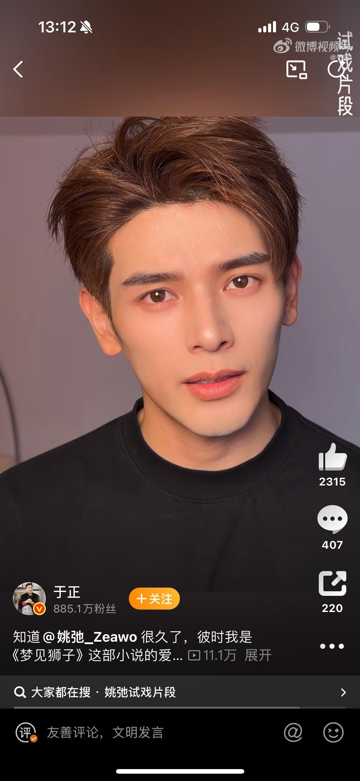 于正老师公布了姚弛的试戏片段,还写长文夸赞演技!天呢,姚弛形象和张力太出众了,往那一站眼里就是戏啊…快开拍吧期待《金吾不禁》!姚弛试戏片段于正说被姚弛惊艳了