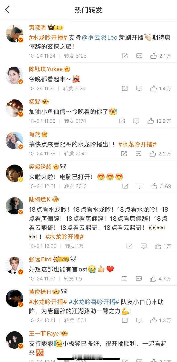 水龙吟 罗云熙人脉挺广啊,摇了这么多人[干饭人] 帮忙宣传的明星名单:黄晓明、肖燕、王一菲、黄俊捷、杨紫、费启鸣、张远、吴谨言、宋轶、张俪、黄轩、王奕婷、陈钰琪、张雪迎、宋茜、章若楠、陆柯燃、陈都灵、丞磊……水龙吟美工挺不错的,真会做海报