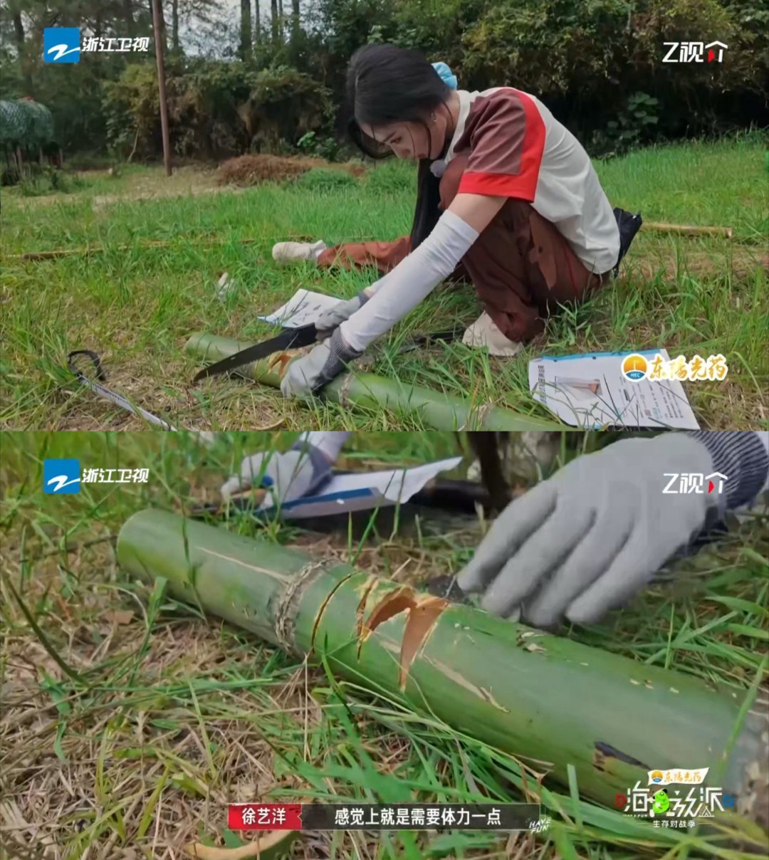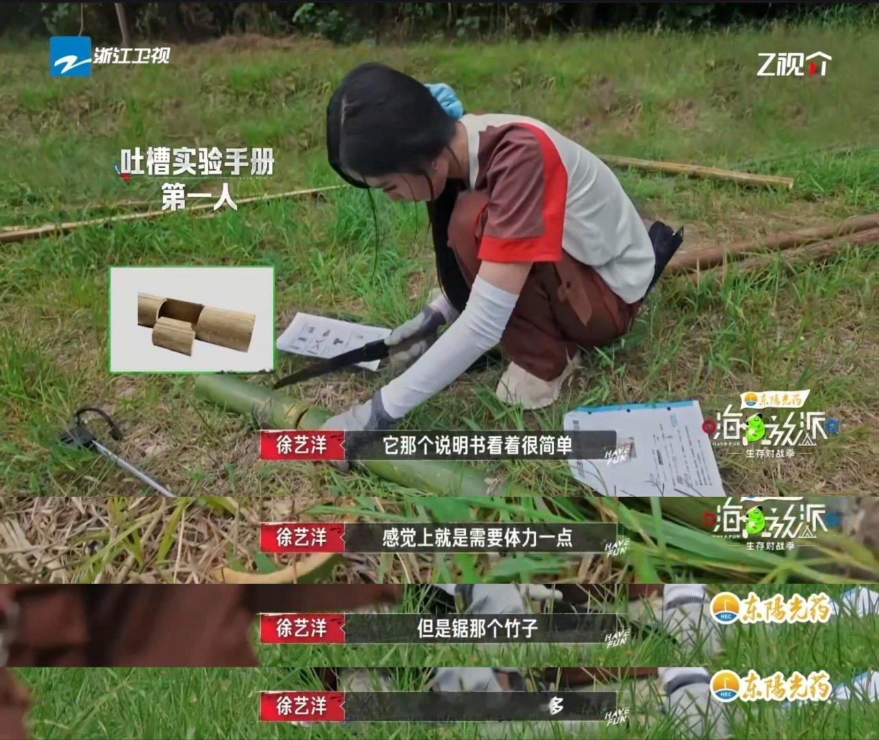 徐艺洋锯竹子嘴没停过嗨放派 看徐艺洋锯竹子笑到打鸣!手上锯子来回动,脑子飞速想技巧,嘴里还对着实验手册碎碎念不停,三线并行忙到脚不沾地,这嘴比锯子还能唠的模样太有梗~