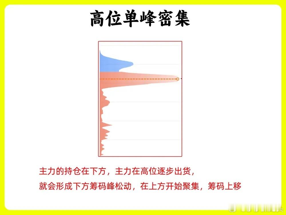 2. 高位单峰密集现,主力出货在进行,下方筹码会松动。
