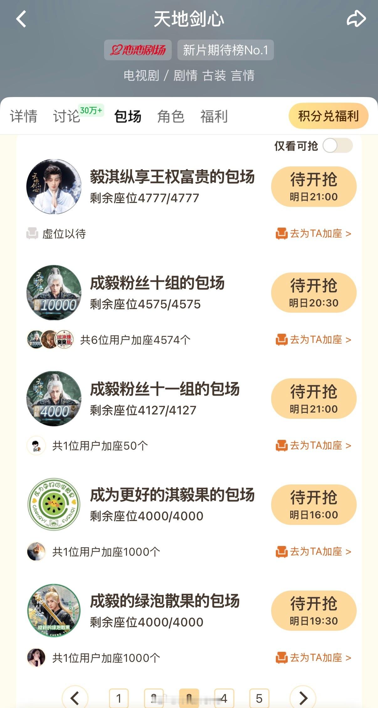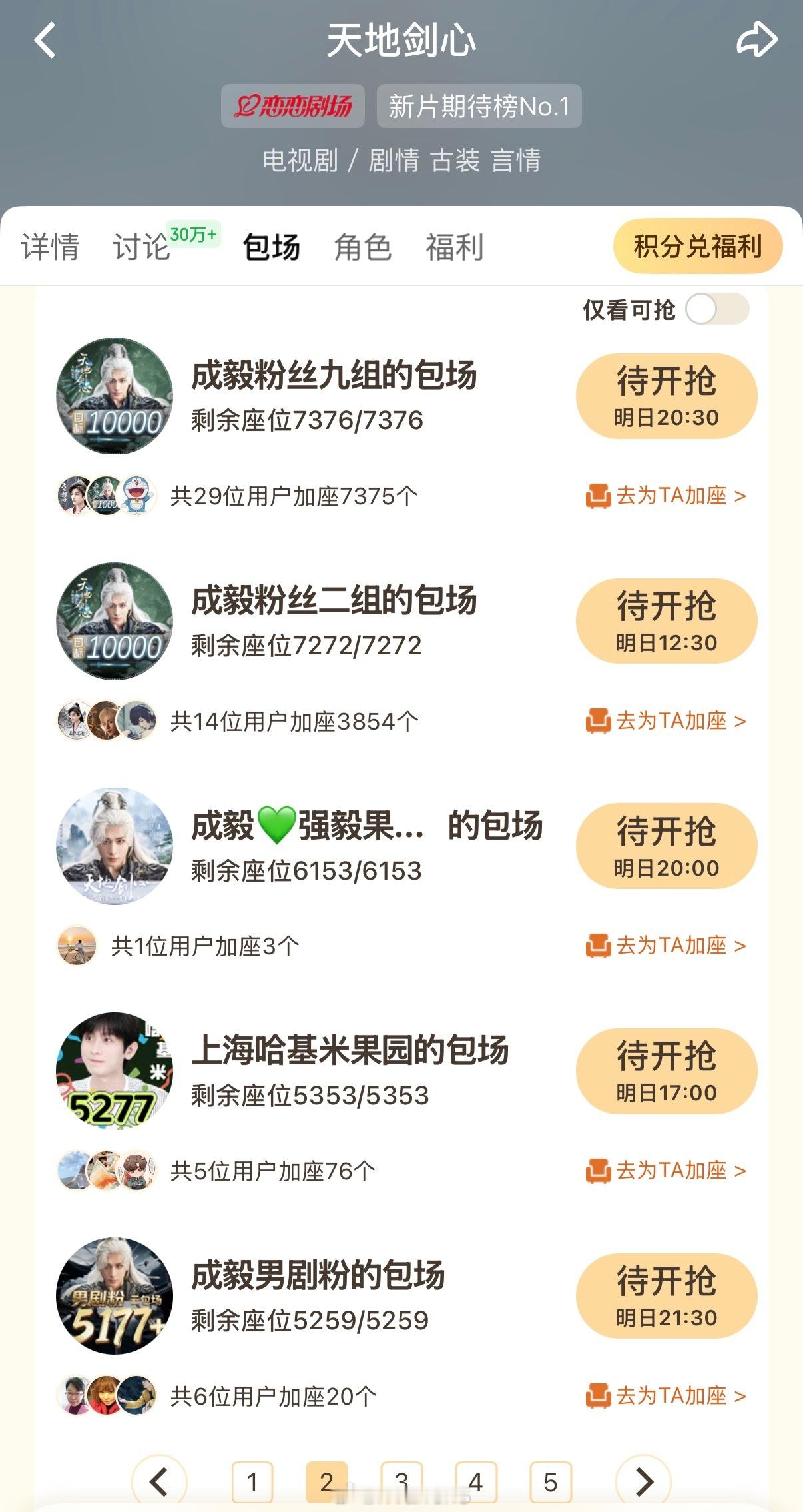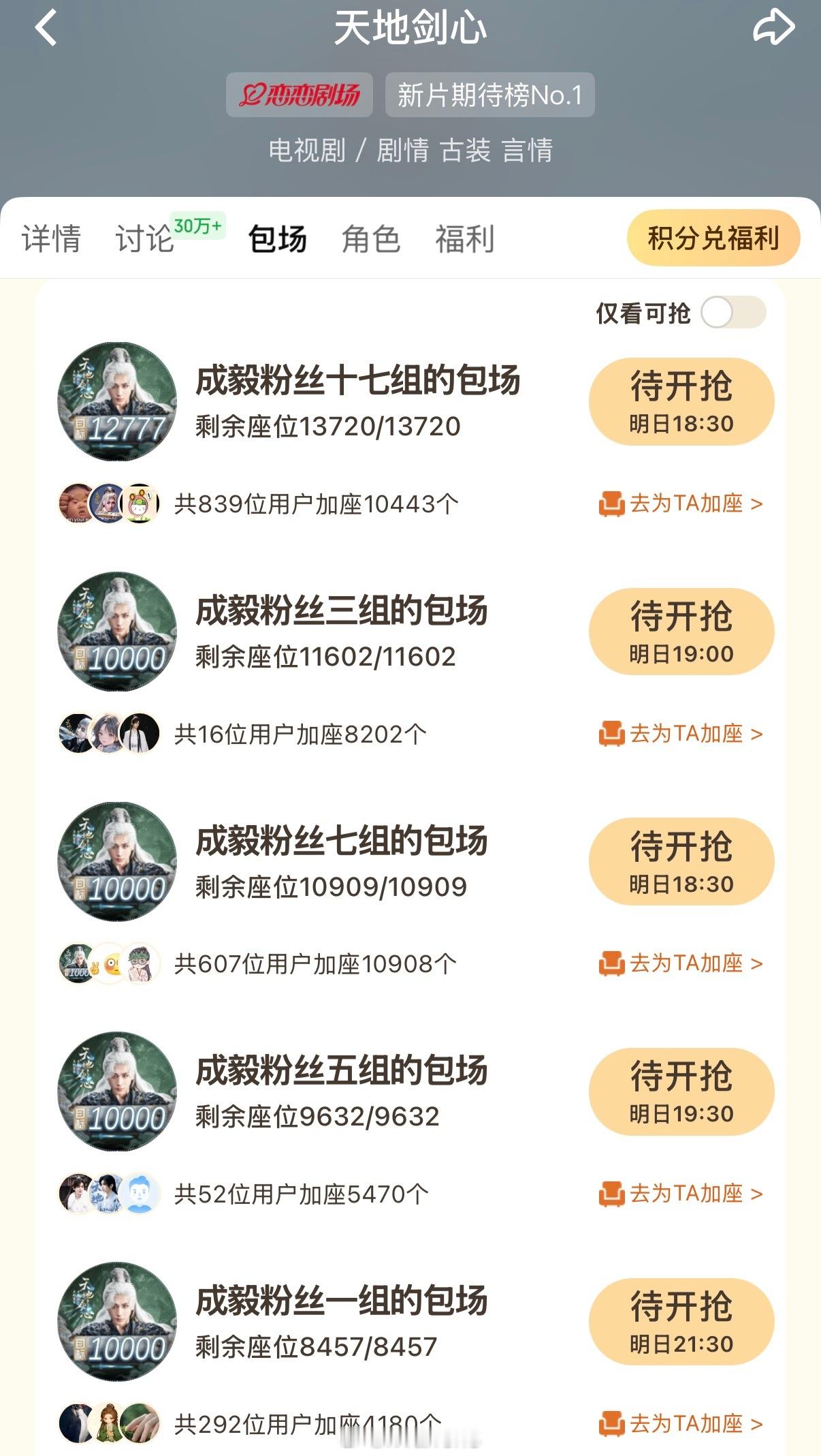 成毅粉丝真的太多了!好多云包场呀!我只截图了部分的,明天都去🥝看天地剑心啦![打call]成毅男剧粉云包场天地剑心