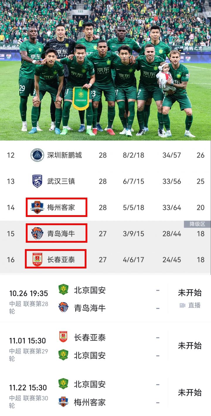 这下中超保级区刺激了!三个最可能降级的球队都要踢国安。 梅州、海牛和亚泰到底谁能
