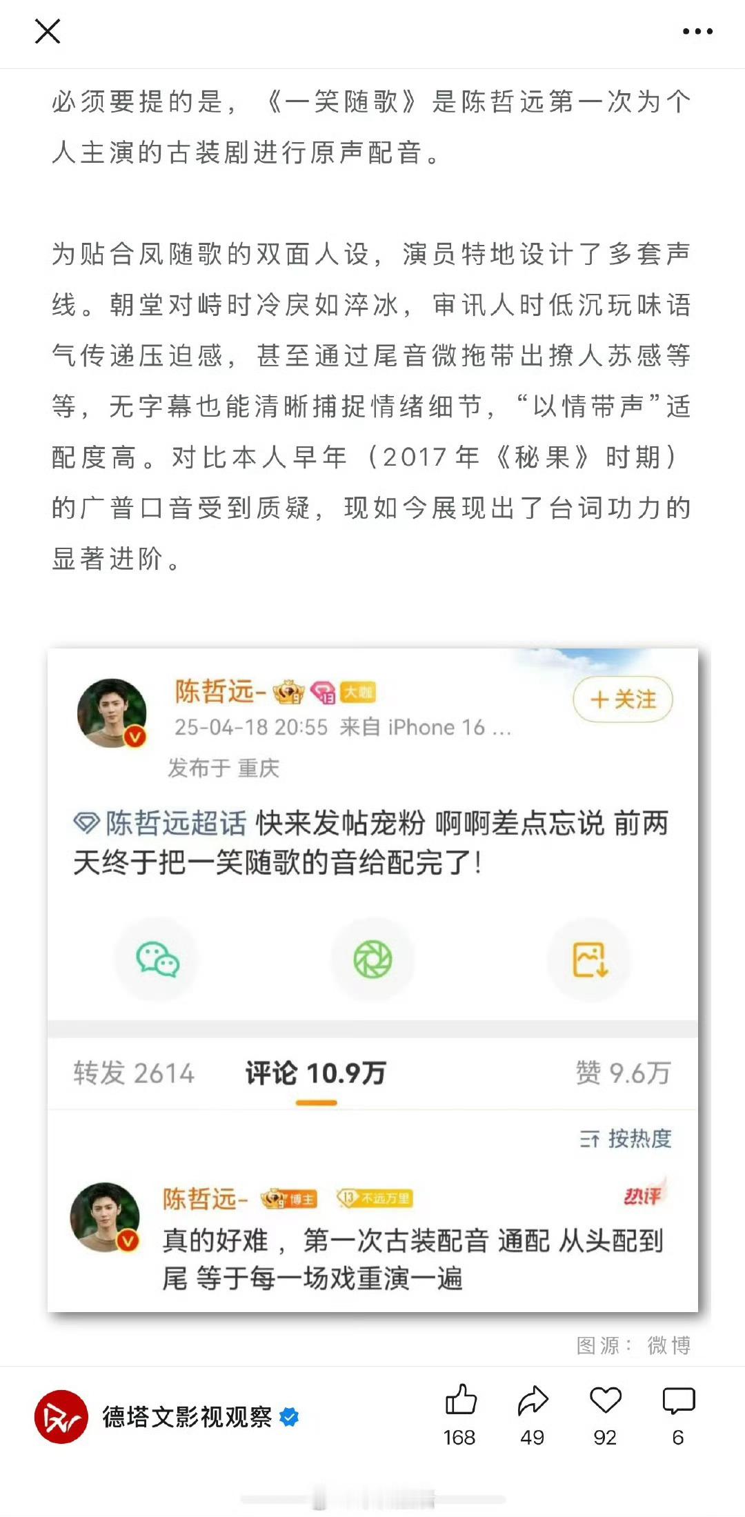 德塔文发文,《一笑随歌》热播,陈哲远颠覆演绎玉面阎罗