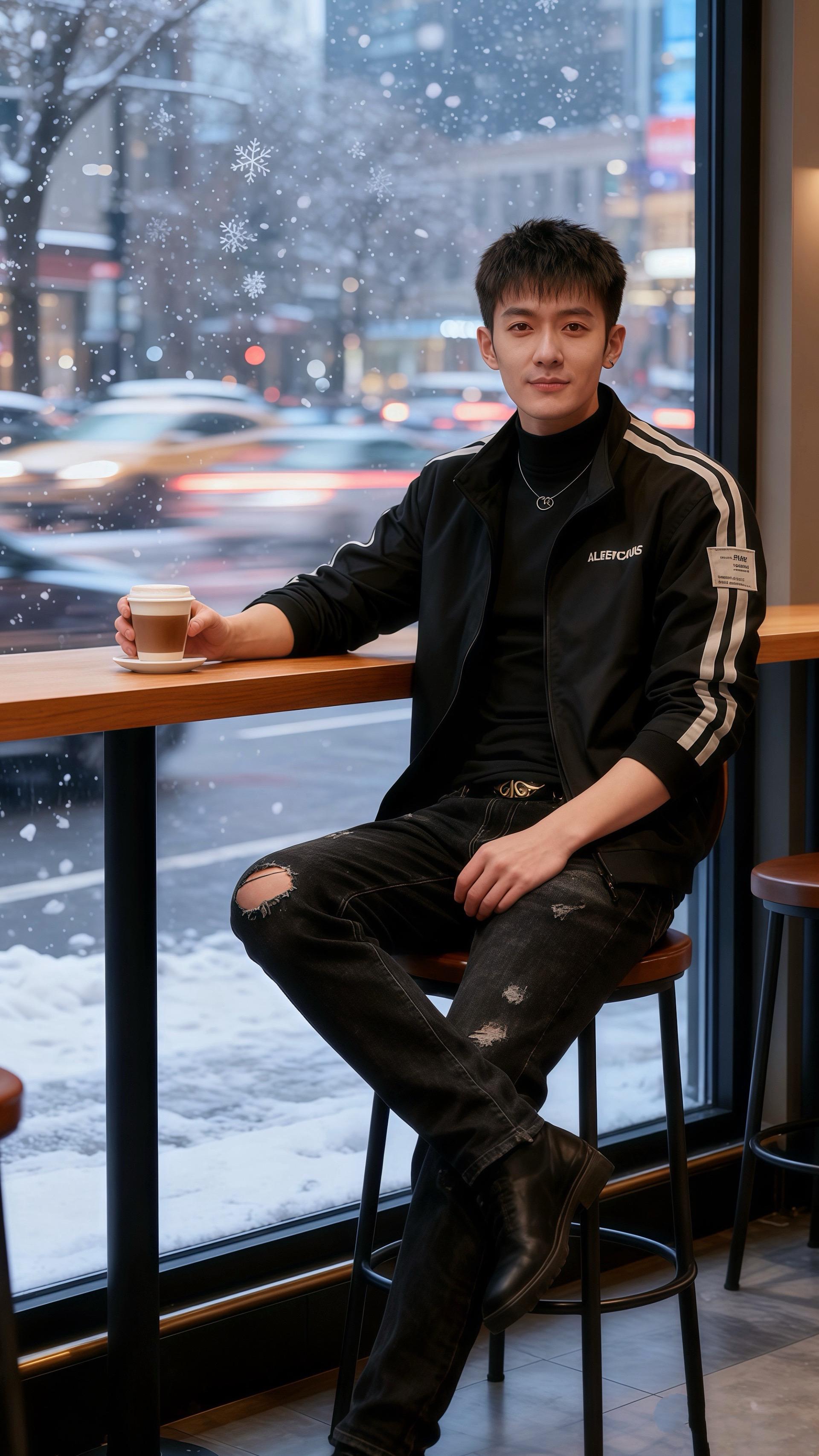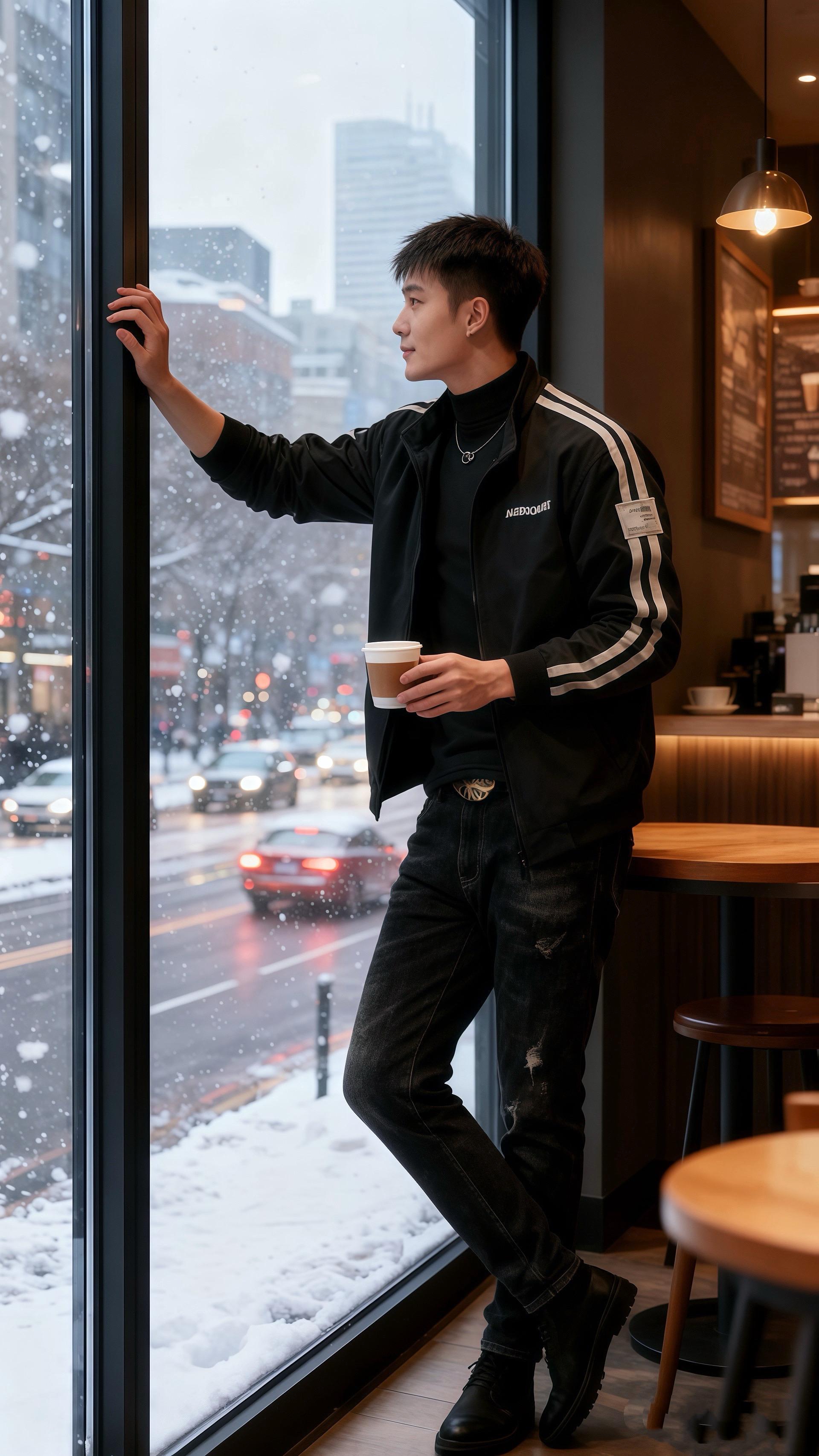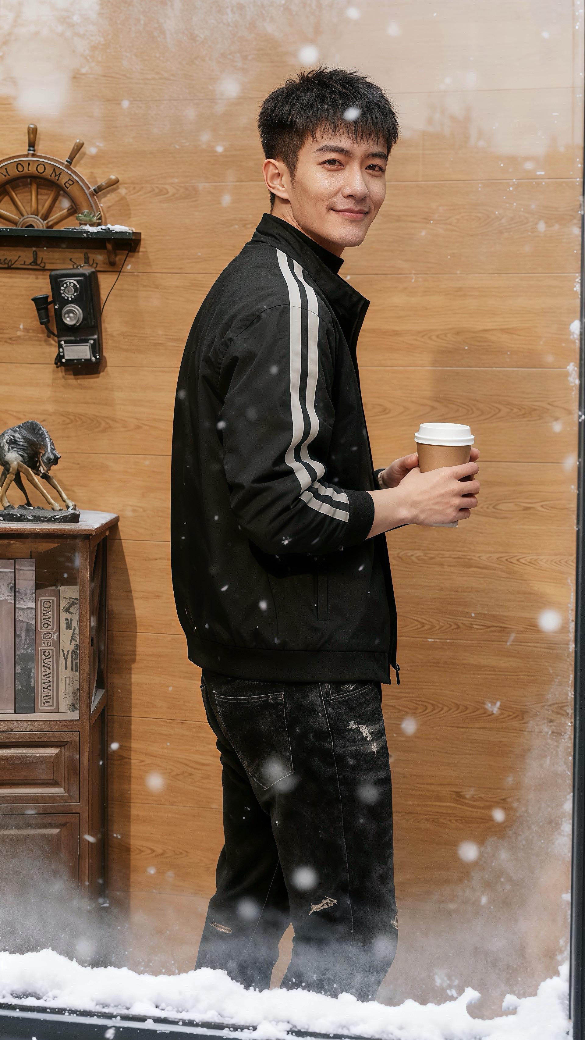 他抬眼看向窗外,落雪裹住街景的喧嚣,却裹不住展架上那件夹克的光。“再走一步”,他对着玻璃里的自己笑,那些被质疑的选择,终会像这冬雪后的街,在冷意里